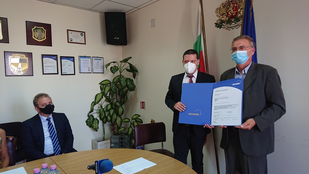 Сертификатът за потвърждение беше връчен на областния управител Илиан Тодоров от Удо Кубиц – вицепрезидент на TUV NORD CERT GmbH. На церемонията присъстваха Борис Ячев – народен представител от ПГ на „Обединени патриоти“ и председател на Комисията на парламентарната комисия за борба с корупцията, конфликт на интереси и парламентарна етика, Стоян Йотов – управител на TUV NORD – България, Данчо Данчев – представител на TUV NORD – България.