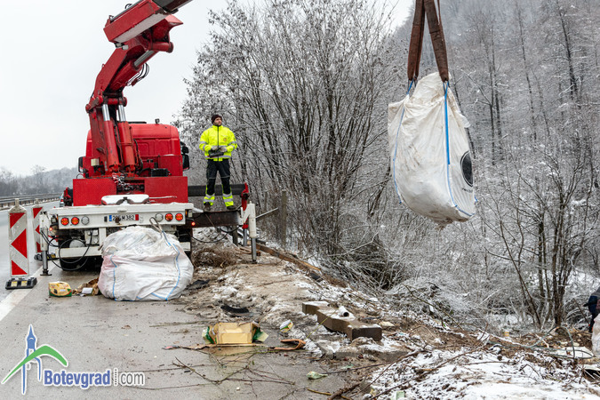 Тежкотоварният камион е превозвал фурми. Сушените плодове бяха извадени днес от дерето с помощта на мото кран на фирма „Омерта груп“.