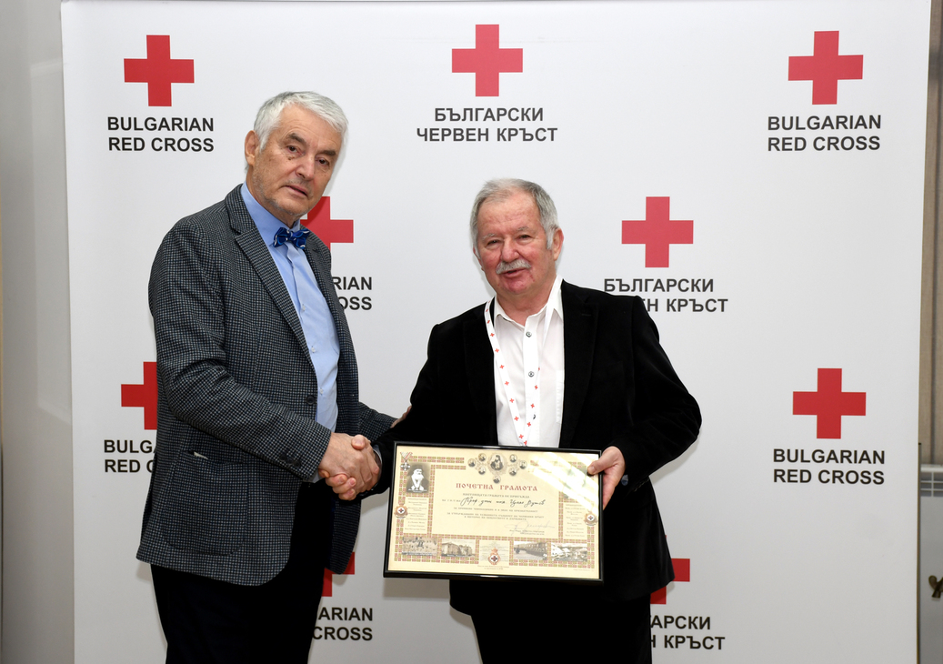 Днес председателят на БЧК акад. Христо Григоров връчи на проф. дтн инж. Цоло Вутов почетен знак на Червения кръст и специална благодарствена грамота в знак на признателност за личния му принос към хуманитарните каузи на организацията.