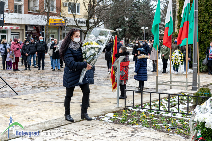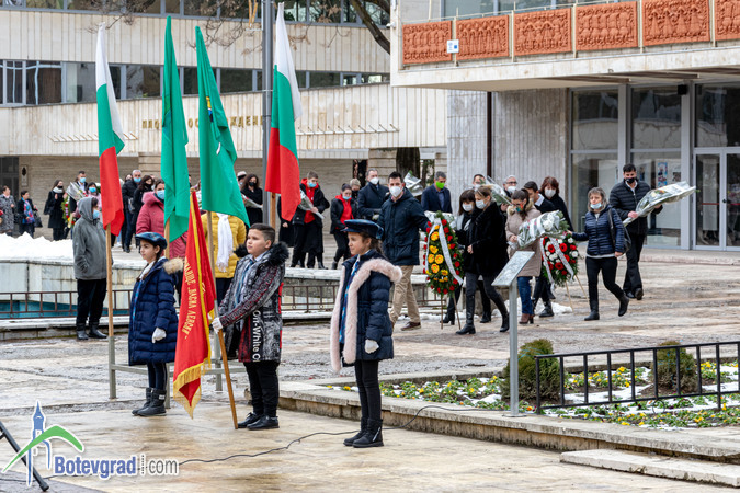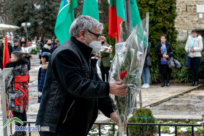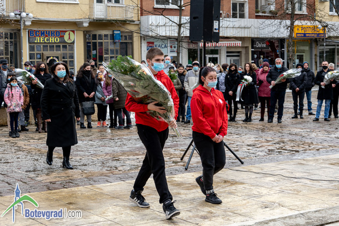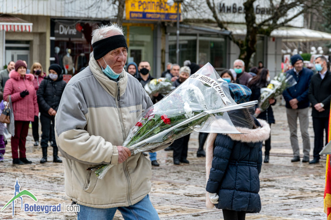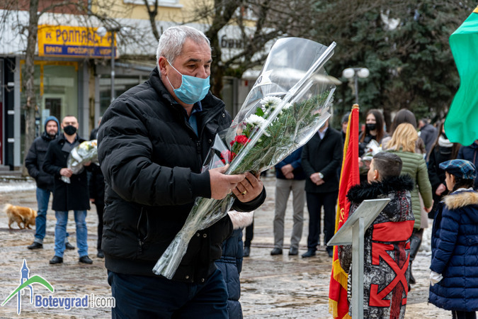 Пред паметника на великия българин глави сведоха ученици и учители от ОУ „Васил Левски“, общинското ръководство, представители на различни институции и организации, общински предприятия и фирми, граждани.
