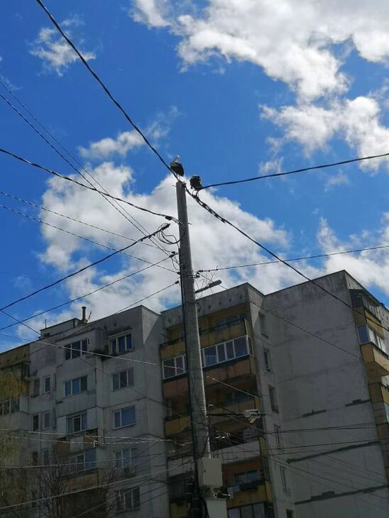 Дни наред двойка щъркели се опитва да свие гнездо на един от новите електрически стълбове на ул. „Преслав“ 44 в Ботевград, но безуспешно. Клоните и тревите, които птиците носят, се плъзгат по пластмасовия капак на стълба и падат на земята.