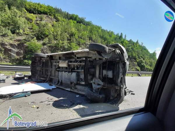 Бус се обърна на АМ “Хемус“ в посока София. Катастрофата е станалата в района на Чурек. Причината за инцидента не е ясна. На място има екип на пътна полиция, пристигна и линейка. Трафикът не е преустановен, но има задръстване.