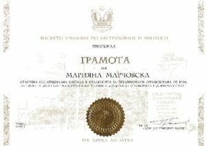 Експертното жури с ръководител доц. д-р Радостин Вазов, зам.-ректор по европейски проекти и продължаващо обучение във Висшето училище по застраховане и финанси /ВЗУФ/, присъди специална награда на учениците от ППМГ “Акад. проф. д-р Асен Златаров” – Ботевград – Марияна Марчовска, Елица Якимова и Георги Данов с преподавател г-жа Милена Андонова, за проекта им “Safe-стоп”, който беше отличен в категория “Социално отговорно предприемачество”. Съобщава сайтът на природо-математическата гимназия.
