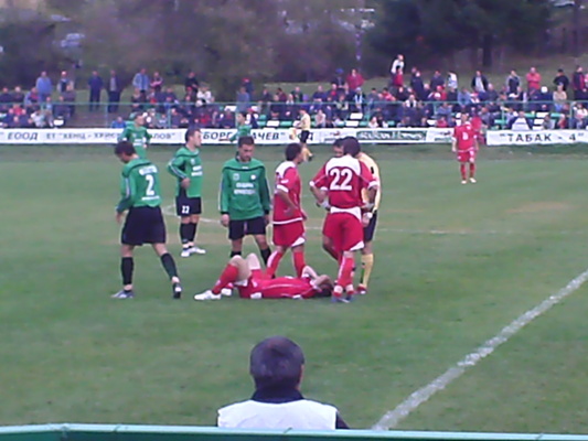 Това позволи на Александър Русков в 15-та минута да отприщи канонадата от голове. През второто полувреме Евгени Игнатов беше непоколебим и направи своя хеттрик. В 52-та, 70-та и в 78-та минута наниза три последователни гола в противниковата врата. Гостите не можаха да реализират отдалите им се няколко случая от пряк и не пряк свободен удар пред нашата врата.