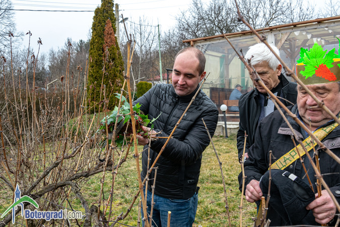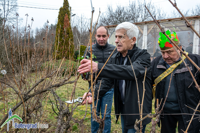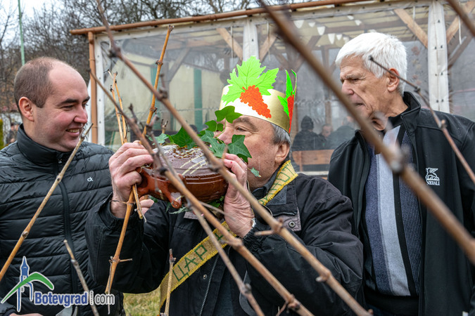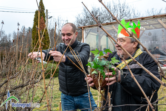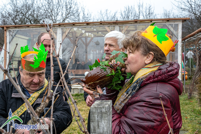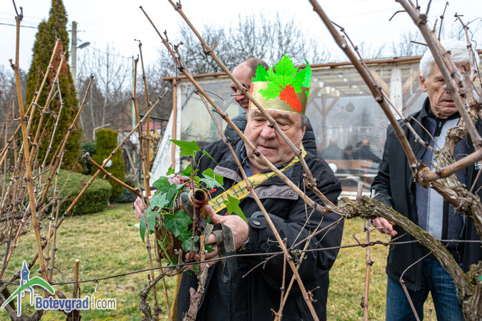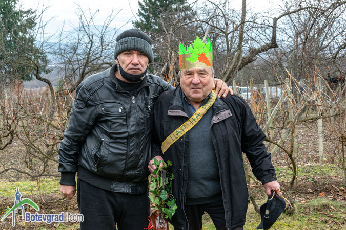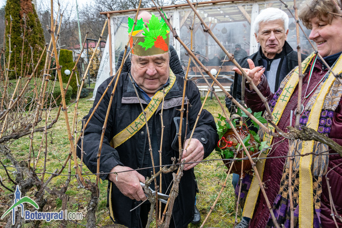 Ритуалът по зарязване на лозята беше изпълнен съвместно от кмета на селото Еленко Иванов и новоизбраните Царица и Цар на лозята в Трудовец.