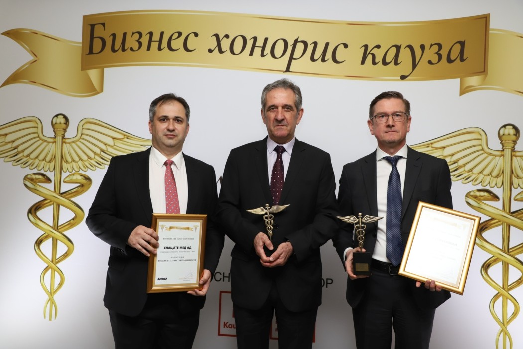 Елаците-Мед АД взе награда в категория „Подкрепа за местните общности“ за всички социални инициативи, насочени към местното население в общините, в които развива дейност. Отличието бе връчено от г-н Стамен Янев, изпълнителен директор на Българска агенция за инвестиции и получено от инж. Драгомир Драганов, изпълнителен директор на Елаците-Мед, който изказа благодарност за високото признание: „Това е доказателство, че усилията ни в социалната сфера в региона, в който работим, са забелязани и оценени. Ще продължим да инвестираме в социални проекти и в околна среда. Искам да Ви уверя, че това е сред нашите приоритети.‟