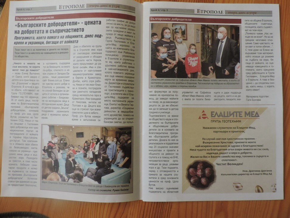 - „Българските добродетели” – цената на добротата и съпричастието. С подзаглавие Програмата, която помага на общините, днес подкрепя и украинци, бягащи от войната
