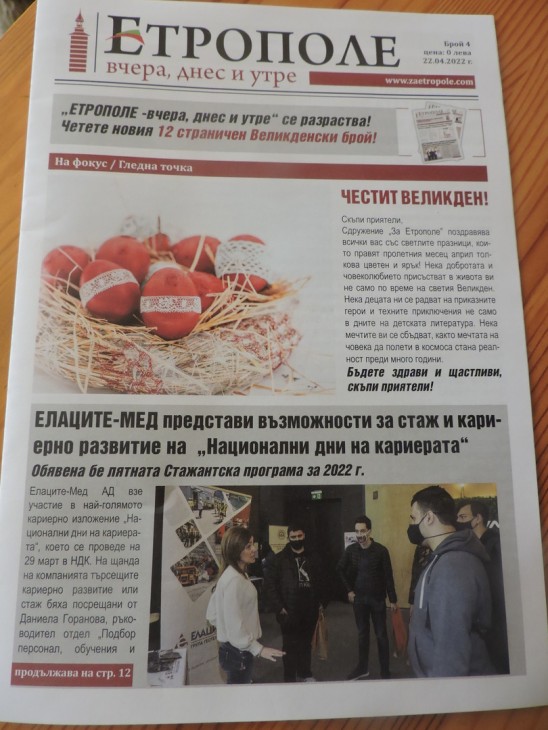 Не съм сигурен дали определението „на пазара” е най- правилно, защото на пазар е това, което се купува, а този вестник е без пари. Сдружението „За Етрополе” на практика го подарява на своите читатели.