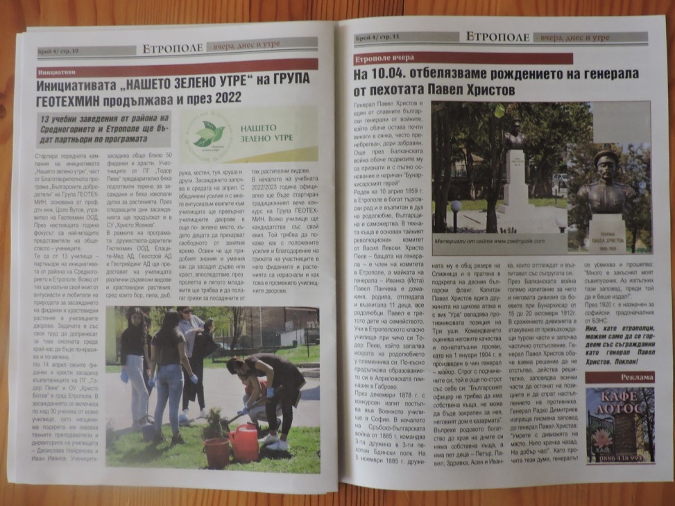 - Инициативата „Нашето зелено утре на група ”ГЕОТЕХМИН”