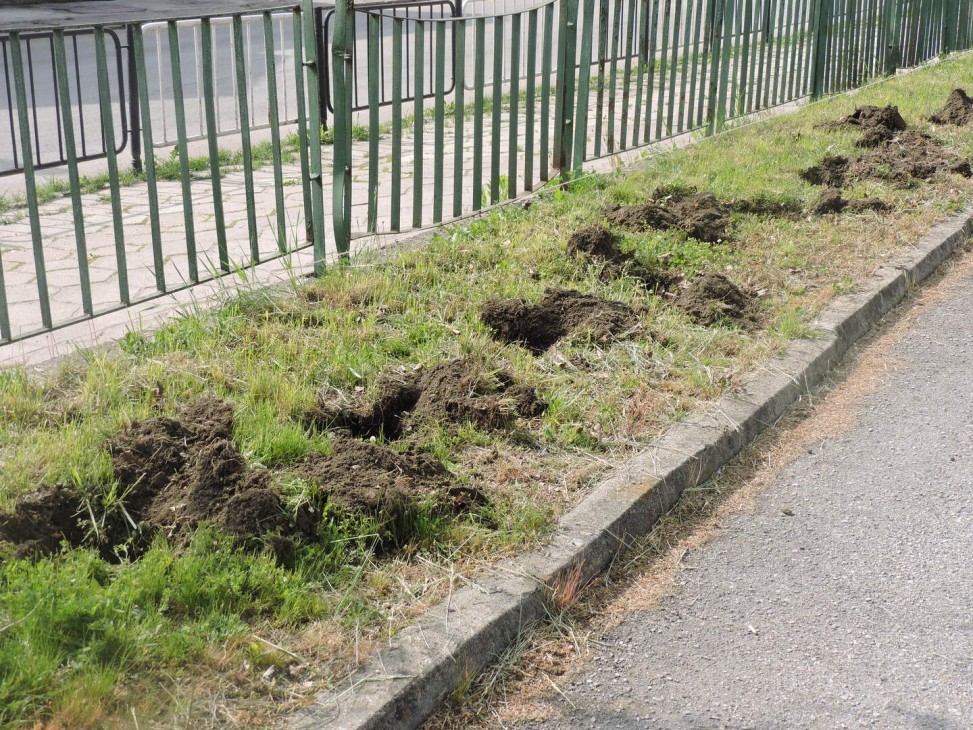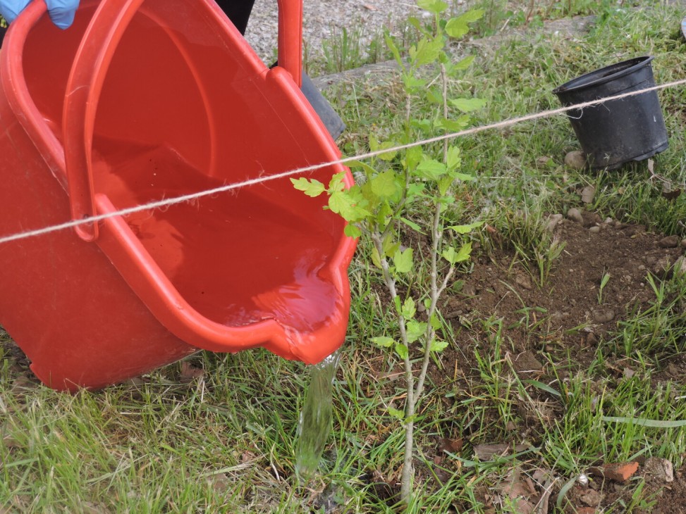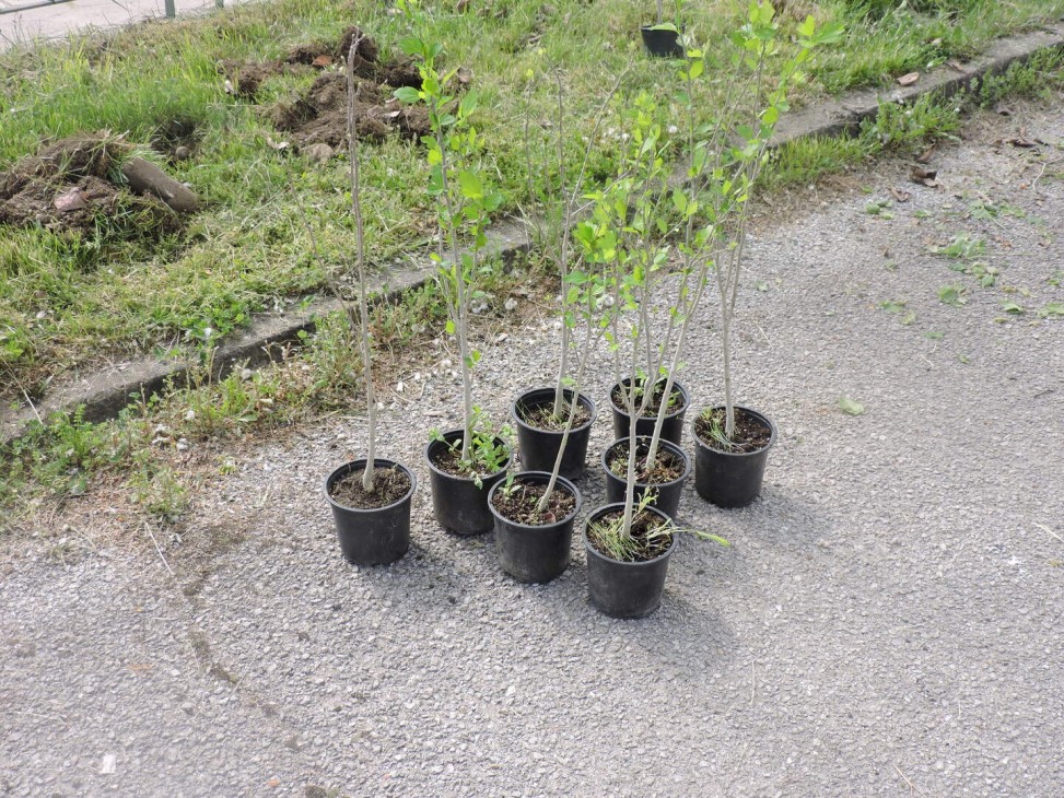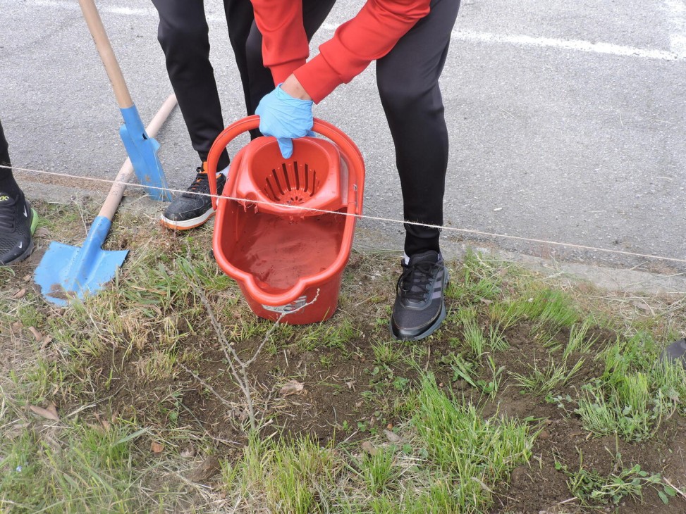 За улесняване на работата на учениците, дупките за засаждане на храстите бяха изкопани предварително.