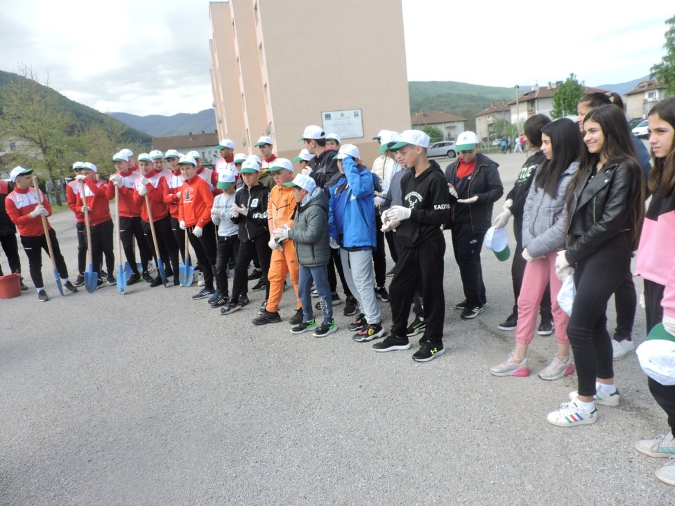 На 4 май в двора на СУ „Христо Ясенов”, ученици от 6, 9 и 10 клас взеха участие в първия етап от инициативата „Нашето зелено утре“ на четирите дружества Геотехмин, Елаците-Мед, Геострой и Геотрейдинг.