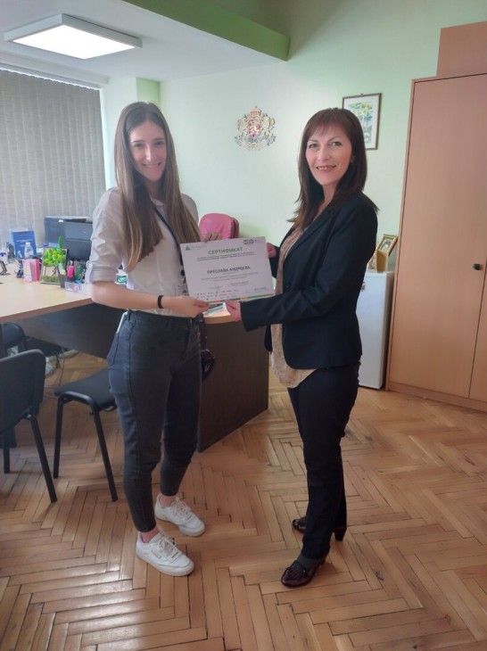 В края на работния ден момичетата получиха сертификати за участие в инициативата, които им бяха връчени от Стефка Граматикова – секретар на Община Ботевград.