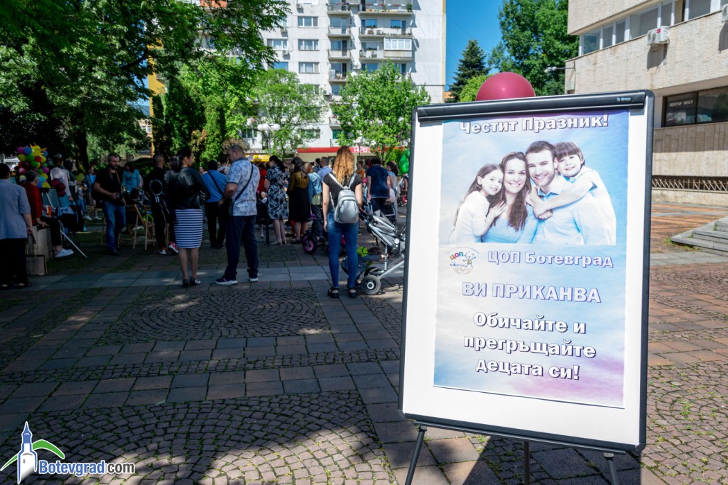 В Ботевград празничната програма, посветена на 1 юни – Международен ден на детето, започна в 10 часа пред Младежкия дом, където се помещава Центърът за обществена подкрепа – организатор на сутрешното забавление. Присъстващите на празника получиха флаери с призив: „Прегръщайте и обичайте децата си!“. Децата бяха посрещнати от най-обичаните и популярни анимационни герои - Сподж Боб, Мики Маус, Мини Маус и Елза и се снимаха със тях.