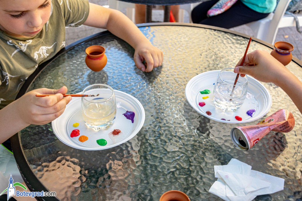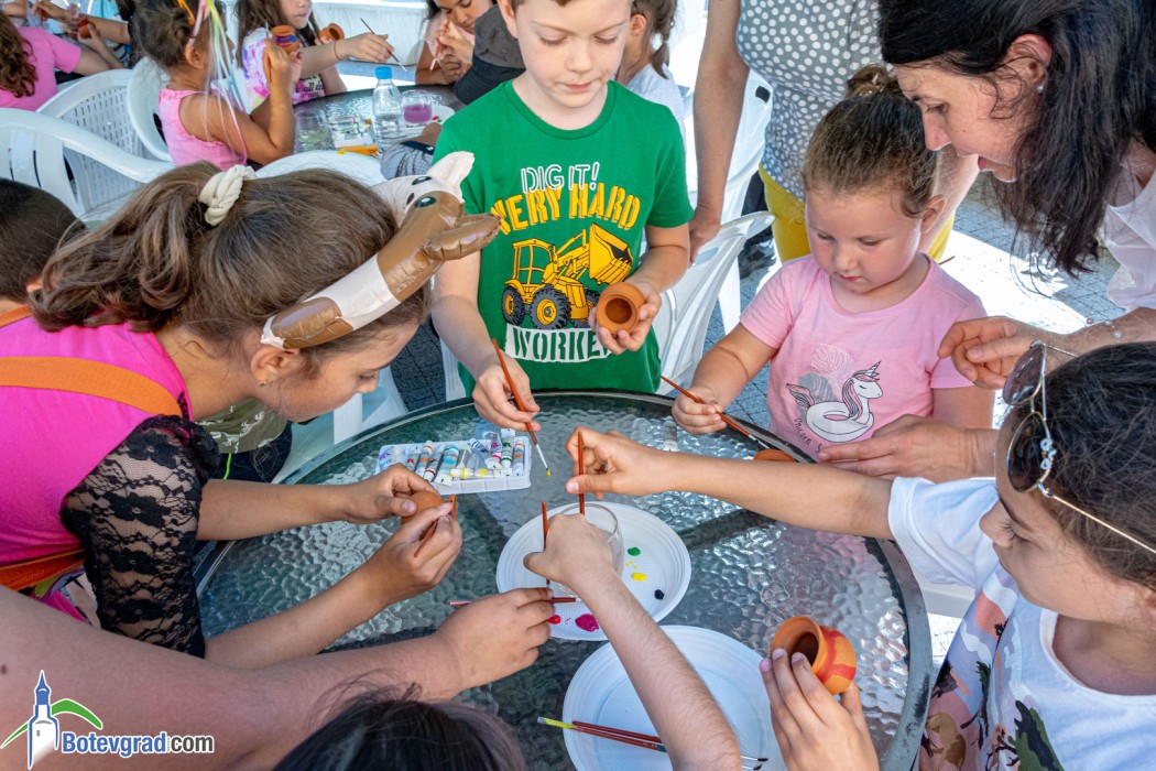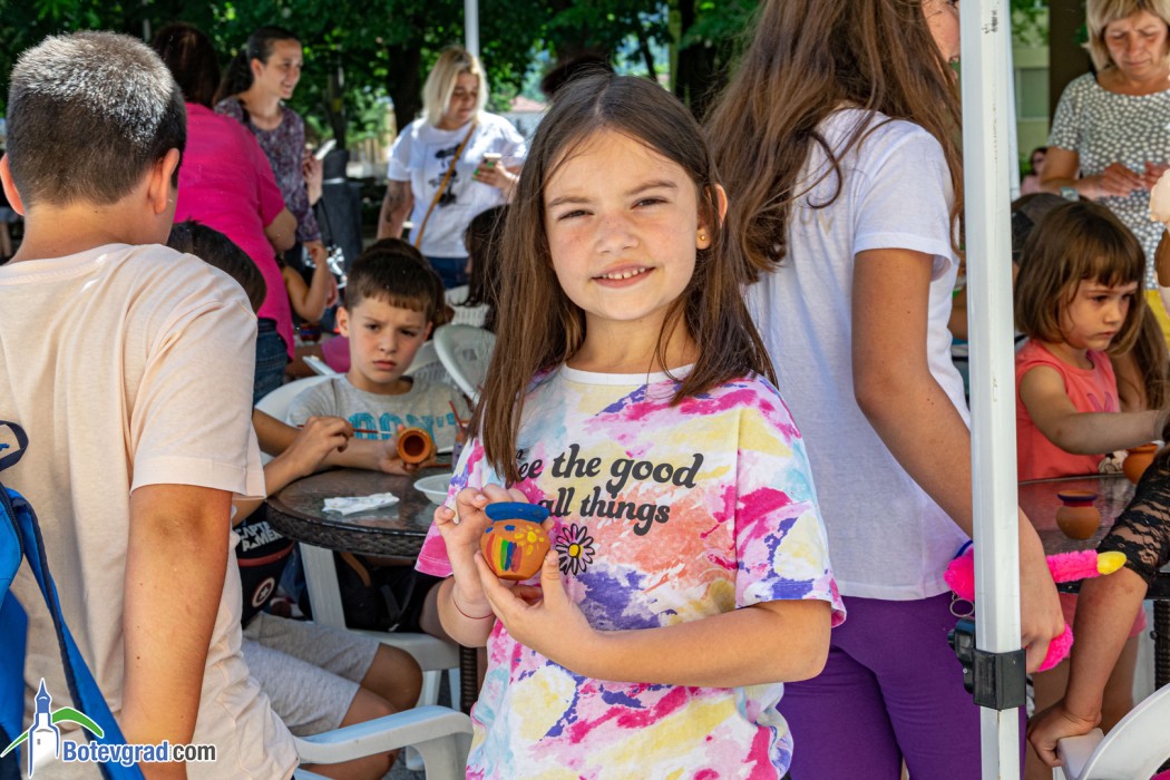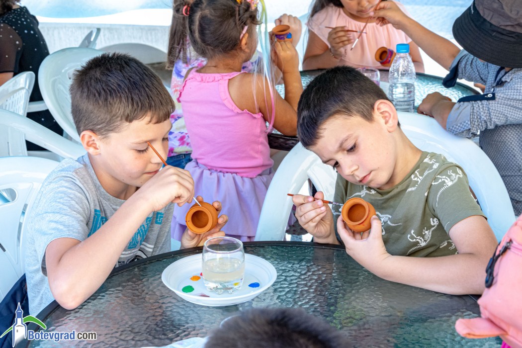 Деца от различни възрастови групи се потопиха в творческата атмосфера на арт-пространството зад Исторически музей Ботевград. Те рисуваха върху керамични съдове, които ще запазят за спомен от днешния празничен ден. Всички необходими материали бяха осигурени от музея – организатор на събитието.
