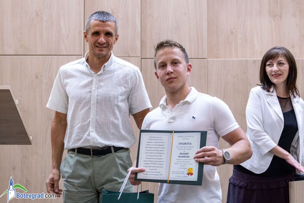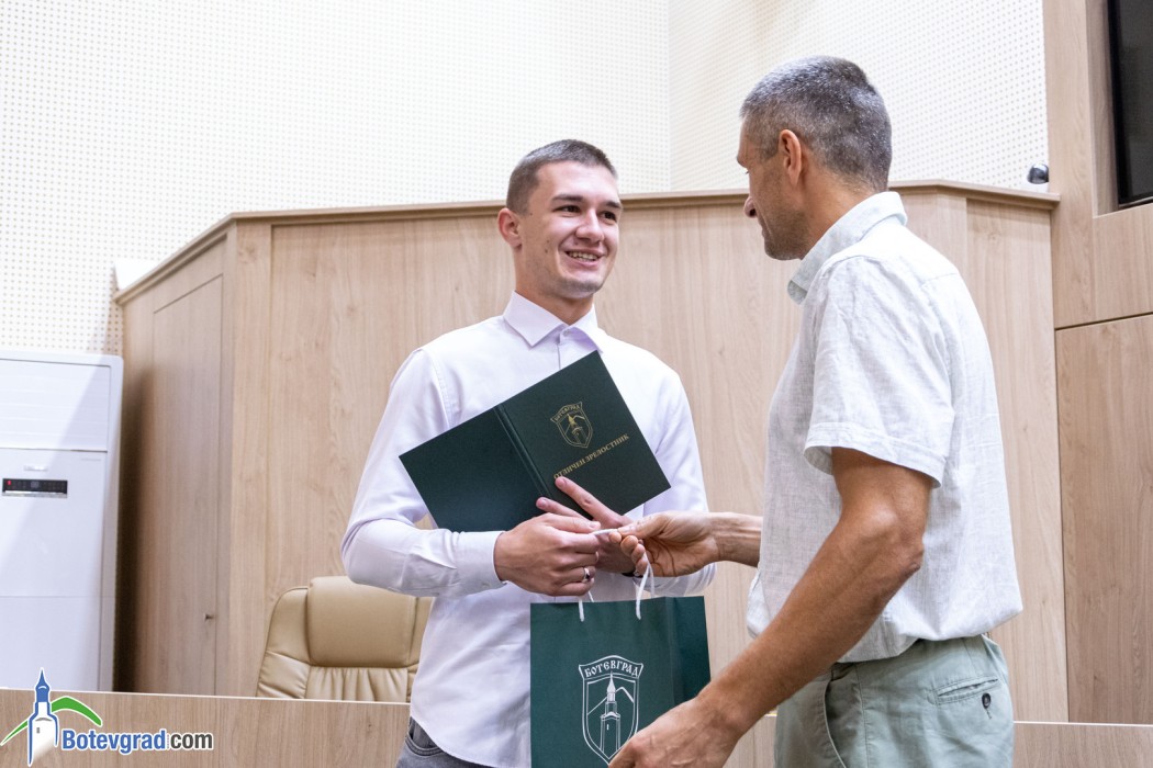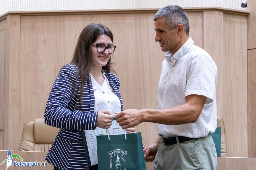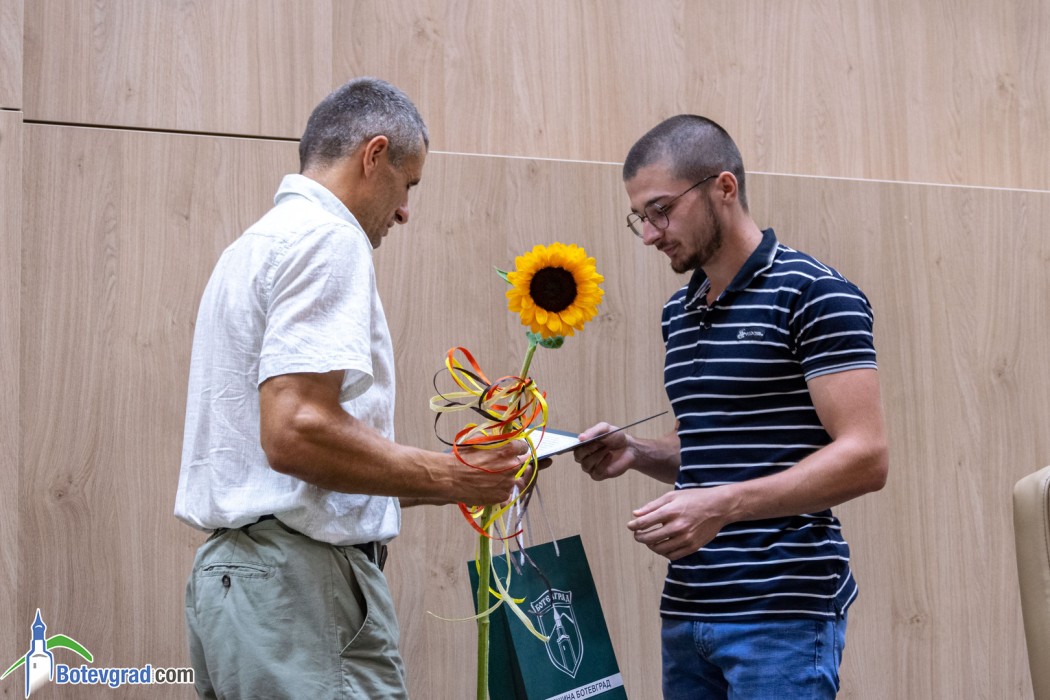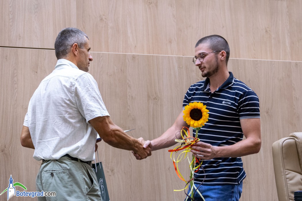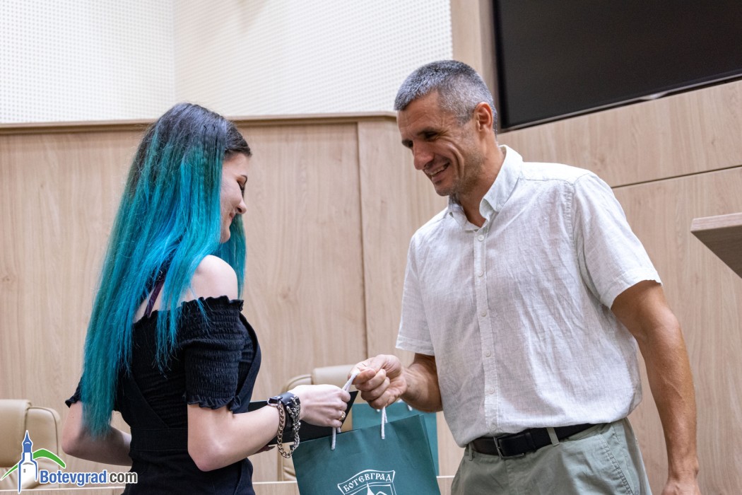 Преди да връчи наградите, кметът Иван Гавалюгов също поздрави зрелостниците за постигнатите отлични резултати и отправи апел към тях: “Вие вървите след нас, разчитаме на Вас, не се притеснявайте да грешите, не се притеснявайте, че някой път нещата няма да се получават, може би не от първия, не от втория, дори не от третия път. Не се отказвайте от посоката, която сте поели, разбира се, консултирайте се с по-опитните от Вас, но винаги преследвайте първоначално набелязания път! Ще има много препятствия и много фактори, които ще се опитват да Ви отклонят, но Вие трябва да бъдете последователни и упорити! Убеден съм, че Ви очаква бляскаво бъдеще! Вярвам, че няма да забравите родното училище, първия учител, въобще учителите, които са Ви помогнали да станете това, което сте днес, и няма да забравите родния град, от който сте тръгнали!“.