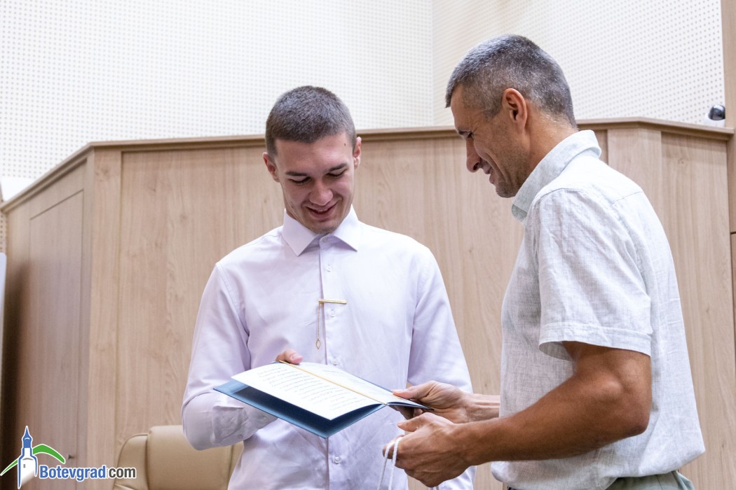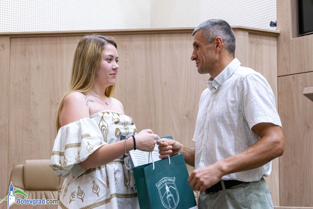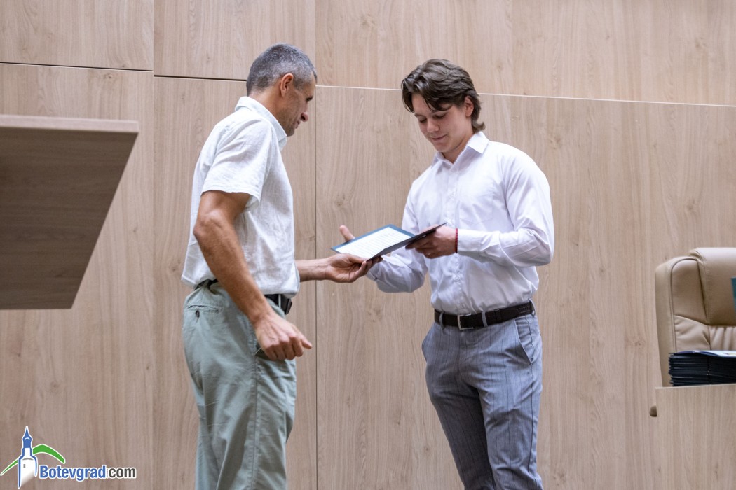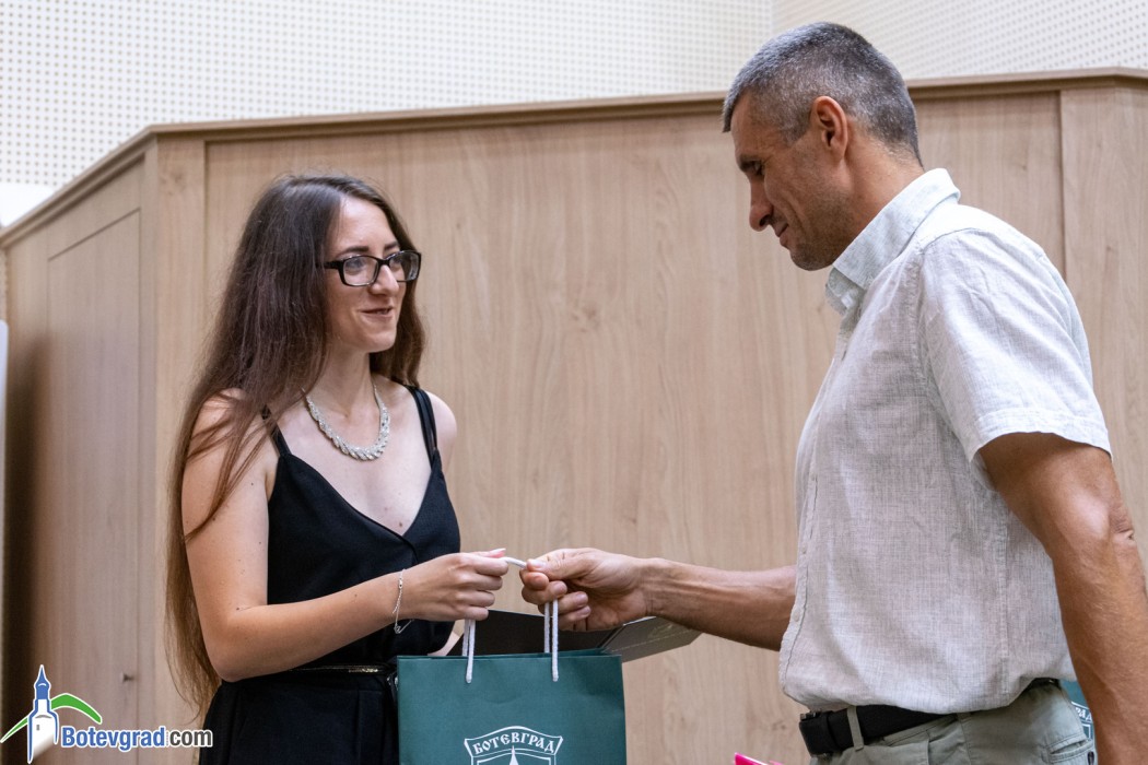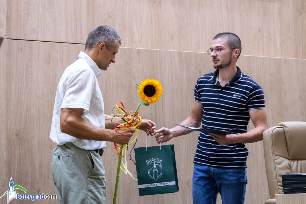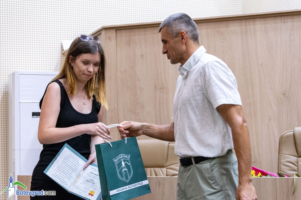 Преди да връчи наградите, кметът Иван Гавалюгов също поздрави зрелостниците за постигнатите отлични резултати и отправи апел към тях: “Вие вървите след нас, разчитаме на Вас, не се притеснявайте да грешите, не се притеснявайте, че някой път нещата няма да се получават, може би не от първия, не от втория, дори не от третия път. Не се отказвайте от посоката, която сте поели, разбира се, консултирайте се с по-опитните от Вас, но винаги преследвайте първоначално набелязания път! Ще има много препятствия и много фактори, които ще се опитват да Ви отклонят, но Вие трябва да бъдете последователни и упорити! Убеден съм, че Ви очаква бляскаво бъдеще! Вярвам, че няма да забравите родното училище, първия учител, въобще учителите, които са Ви помогнали да станете това, което сте днес, и няма да забравите родния град, от който сте тръгнали!“.