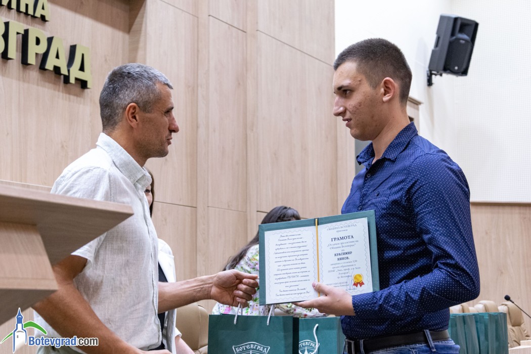 56 зрелостници бяха удостоени с почетна грамота “Отличен зрелостник на община Ботевград“. 50 от тях са възпитаници на ППМГ “Акад. проф. д-р Асен Златаров“, 5-ма – на ПГТМ “Христо Ботев“ и 1 – на ТПГ “Стамен Панчев“. Официалната церемония по награждаването се състоя днес в зала “Ботевград“. Освен почетната грамота, отличниците получиха и книгата “101 отбивки: Презареждане“.