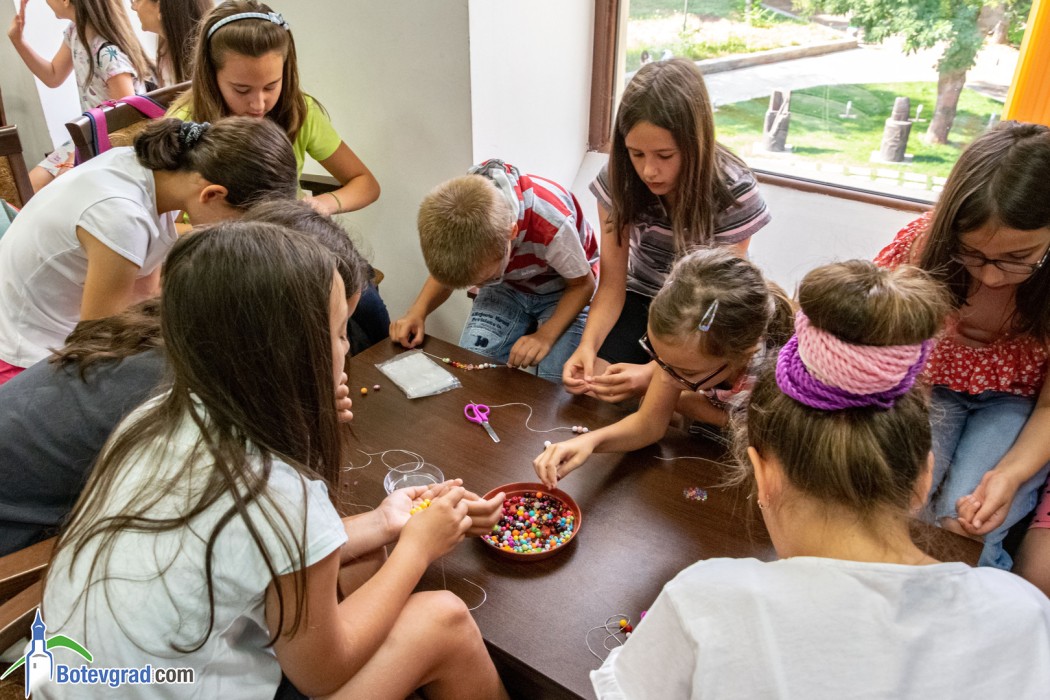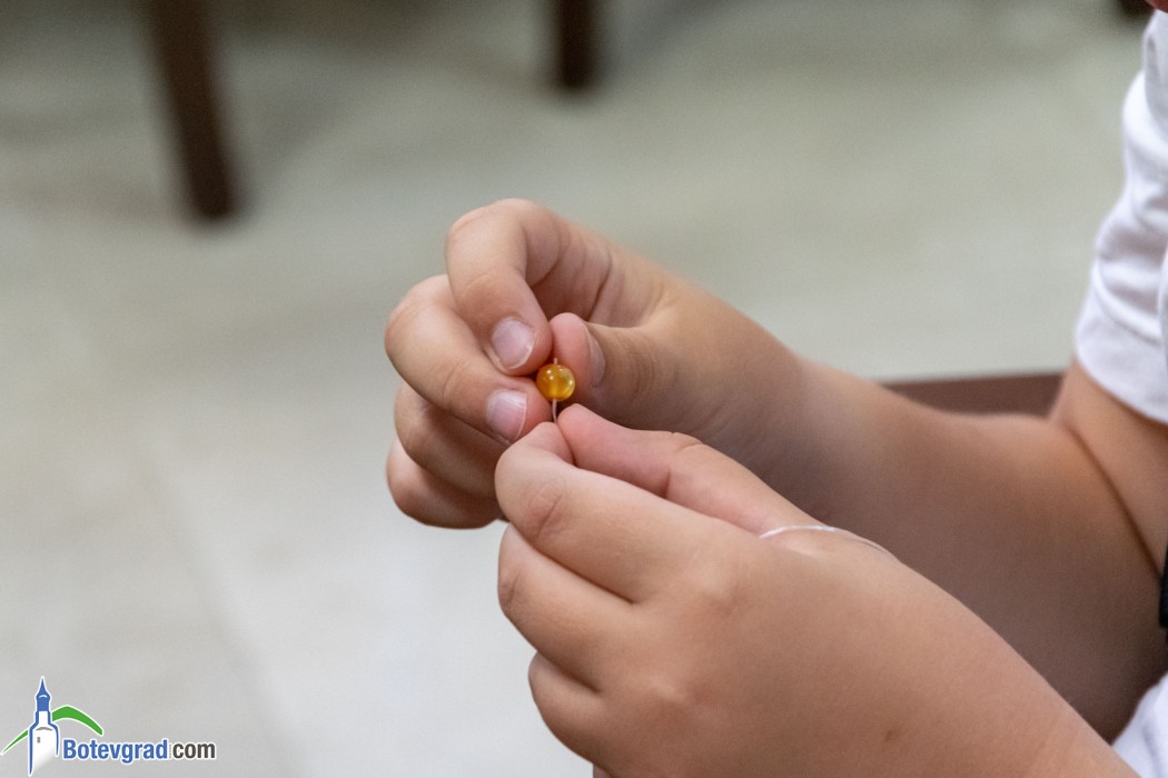 И третият ден от инициативата “Весело лято в Ботевград“ събра деца на различна възраст. В залата на Исторически музей – Ботевград те се впуснаха в поредното приятно занимание – изработка на апотропейни накити и амулети от мъниста. Децата с огромен интерес, желание и нетърпение се захванаха да нижат маниста още преди да изгледан презентацията, подготвена от Историческия музей, за силата и символиката на малките стъклени кръгчета, които в миналото изпъстряли традиционните български носии и накити. И не само – в тях имало и сила да пазят, затова се носели и като амулети.