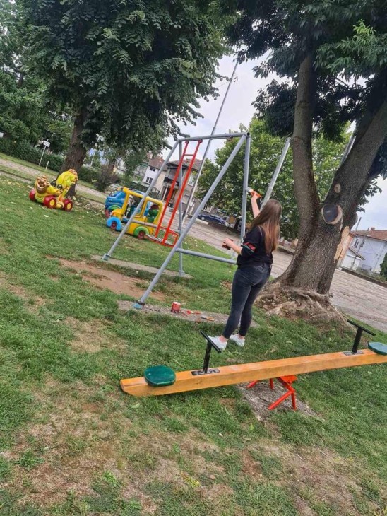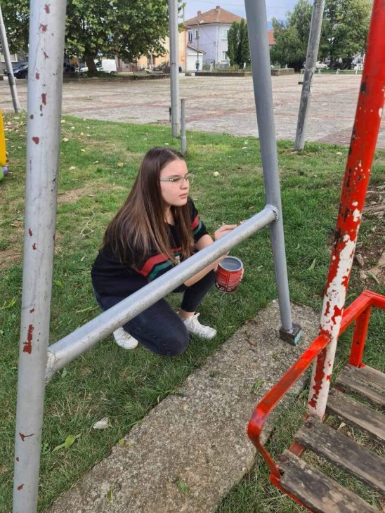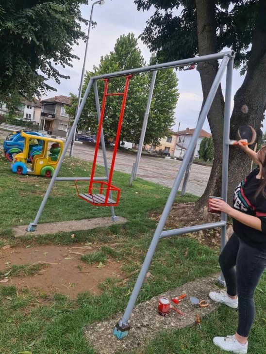 Доброволческата инициатива бе осъществена вчера. За няколко часа обликът на детската площадка бе променен. Тя придоби по-красив и привлекателен вид, който зарадва малките ползватели и техните родители.