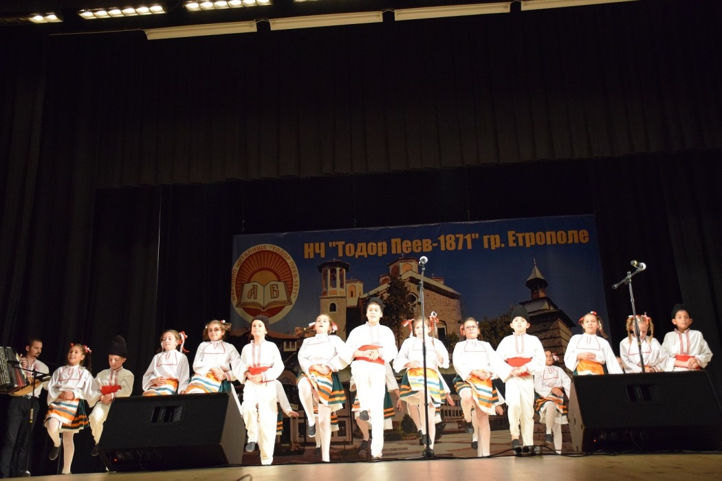Децата от школите показаха какво са научили към момента. На сцената се изявиха деца от 2. до 7. клас. Концертната част завърши с думите „Колкото и малък да е един народ, той няма да загине, ако има собствен език, ако цени културата и музиката. Това ни доказаха този ден нашите малки етрополски таланти“. Накрая всички малки деца бяха поканени на сцената, за да се потопят в магията на танца и музиката.