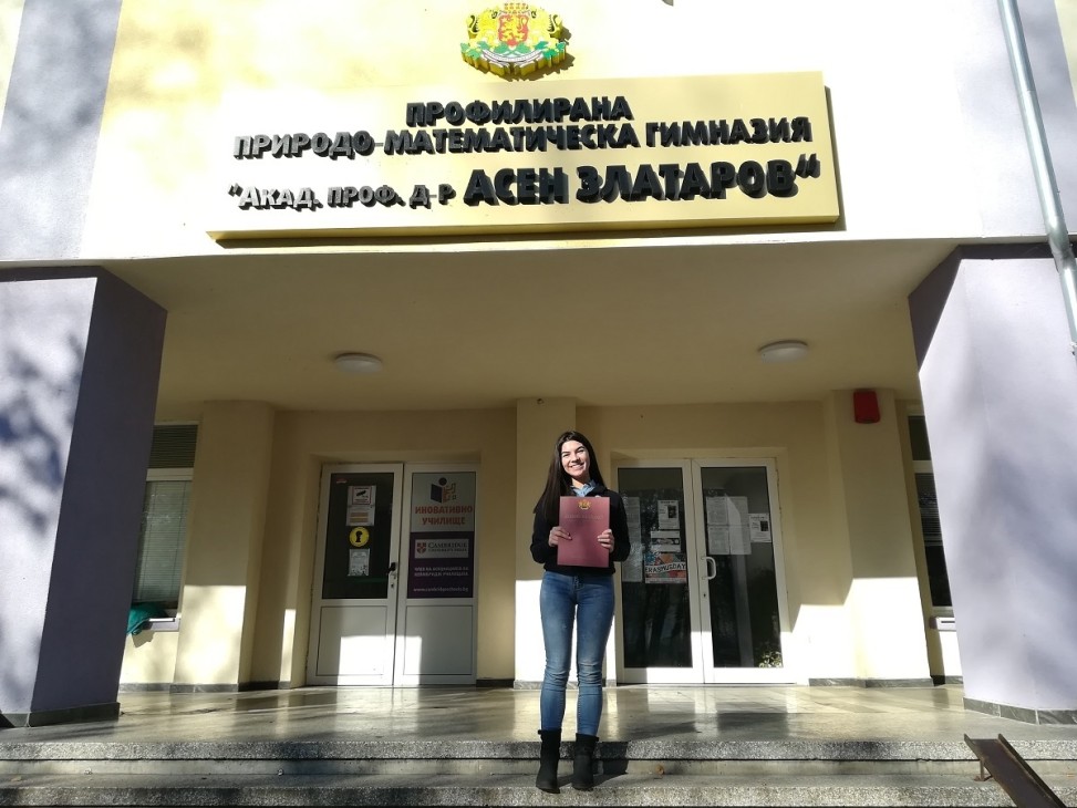 В категория “Есе“ първа награда отива при Иванина Иванова. През 2020 год., когато бе ученичка в XI клас на ППМГ “Акад. проф. д-р Асен Златаров“, тя също бе класирана на първо място в тази категория. През настоящата година Иванина стана лауреат и на фестивала “Българска душа на Святата земя“, раздел “Изпълнение на българска фолклорна песен“. Тя се класира на първо място в пета възрастова група.