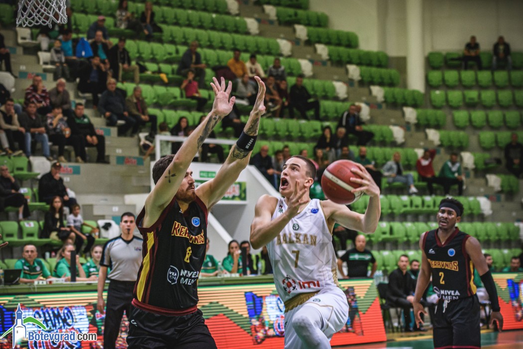 Страхотен успех на баскетболистите на Балкан във второто поредно домакинство от група Д на турнира за Купата на ФИБА Европа. Те победиха кипърския Керавносс 85-76 /19-17, 18-18, 21-13, 13-23, 14-5/ след петминутно продължение за огромна радост на всички в Арена Ботевград. И то с доста кадрови проблеми – неприятна контузия има Райън Хароу, със здравословни проблеми бе и Тошков, а ден преди мача от вирусно заболяване се оплакваше Христо Захариев.
