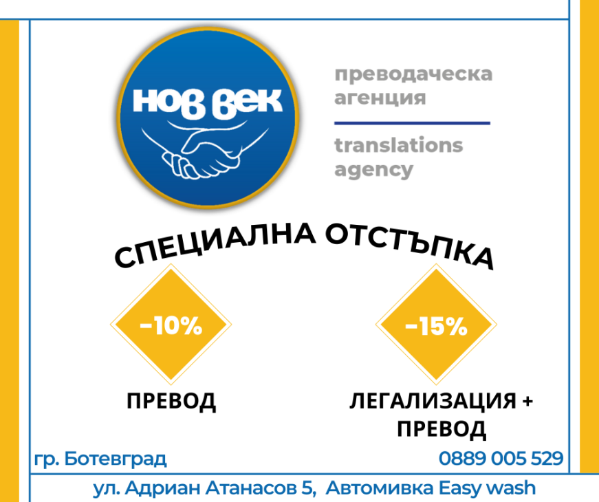Преводаческа aгенция НОВ ВЕК извършва лицензирани езикови преводи и легализация на документи на всички езици от заклети преводачи.