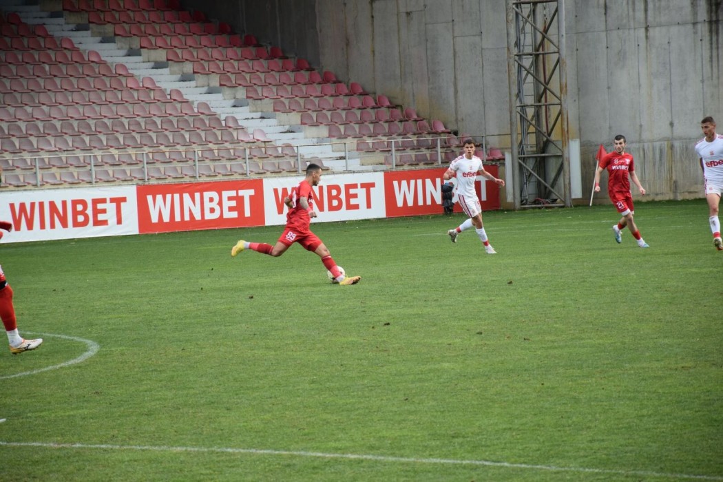 През първото полувреме на мач до гол не стигна, етрополци допуснаха поредица от пропуски пред вратата на своя съперник и липсваше концентрация в завършващата част на атаката.