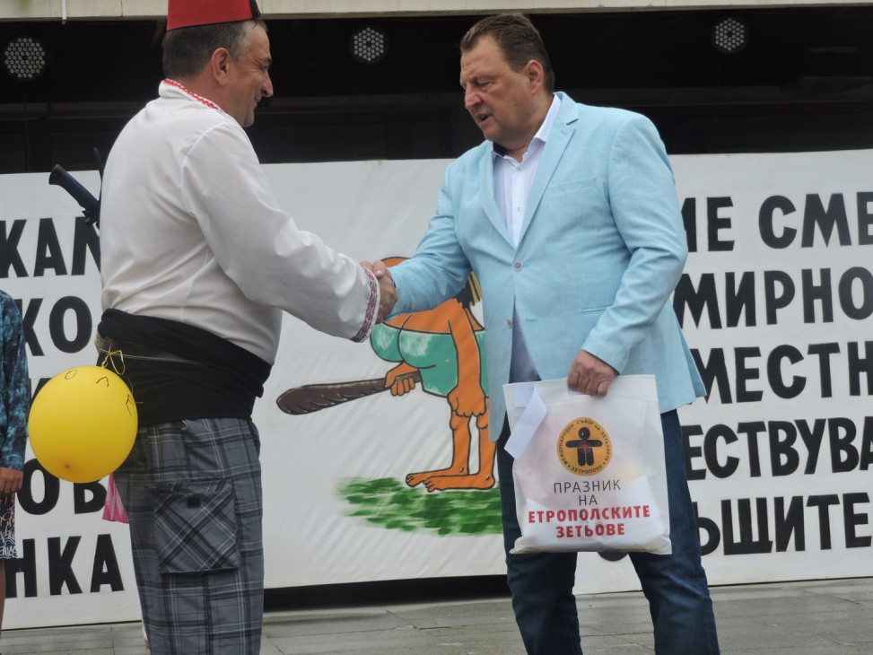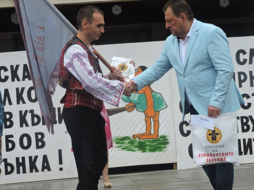 По традиция карнавалното шествие на пристигналите за празника на етрополските зетьове приключва на централния площад.