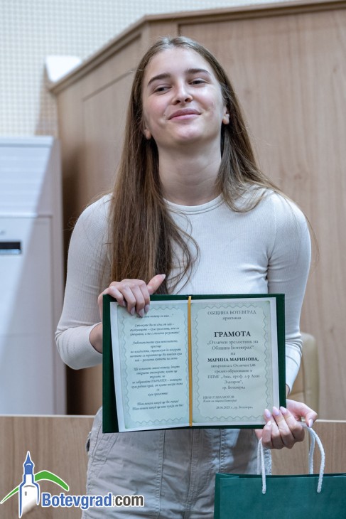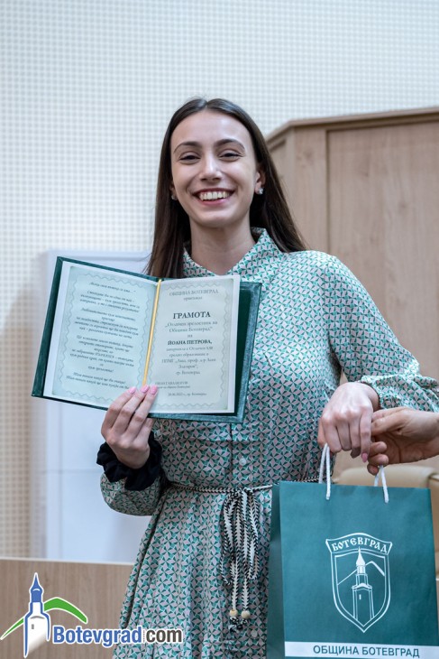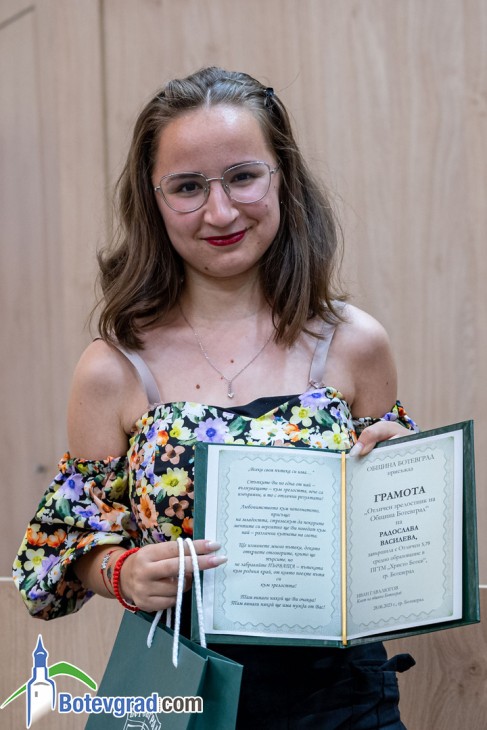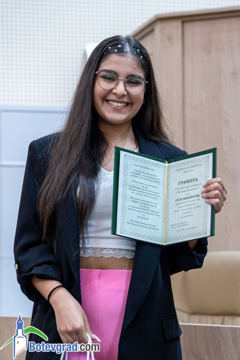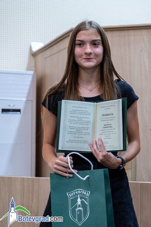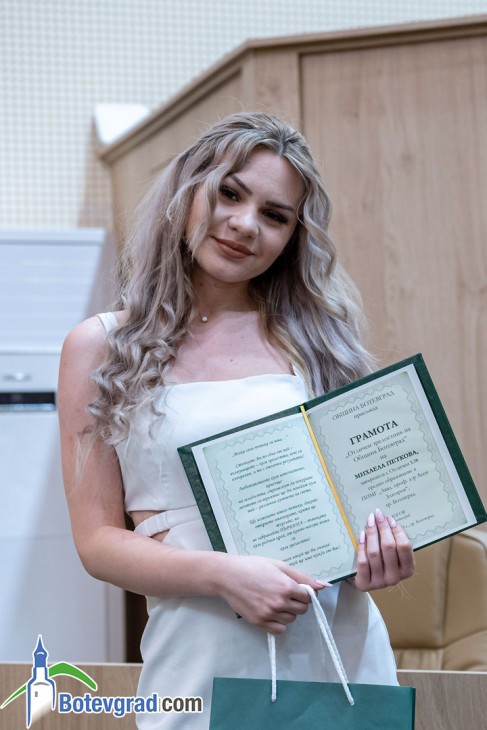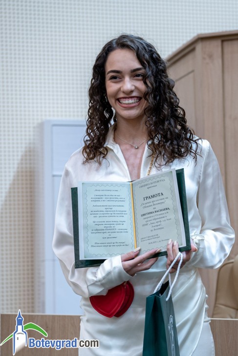 “Днес се вълнуваме и гордеем едновременно, за това че пред нас стоят 47 девойки и младежи, родени, учили, израснали в община Ботевград и завършили успешно своето средно образование именно тук. 47 млади хора, които искам да поздрава за избора да извървят този път към зрелостта с изключително високи резултати. Защото това е избор, който всички вие сте направили за себе си, но той е подкрепен именно от вашите родители и учители. Благодаря ви, за това че днес сме заедно тук и за осма поредна година ръководството на Община Ботевград има възможността да изрази тази морална подкрепа към вас, като ви връчи отличието “Отличен зрелостник“, каза г-жа Граматикова в обръщението си към младите хора. Тя им пожела “на добър път“ и им напомни: “Винаги тук някой ще Ви очаква и ще има нужда от Вас!“.