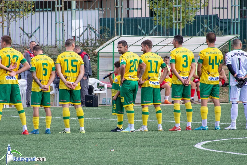 Много бързо обаче футболистите на Балкан влязоха в необходимия ритъм. Проведоха няколко добри атаки, при една от които се стигна до изравнителен гол. Удар на Димитър Руйчев бе отбит от вратаря на домакините, топката попадна у Калоян Бонев, който я прати във вратата за 1-1.