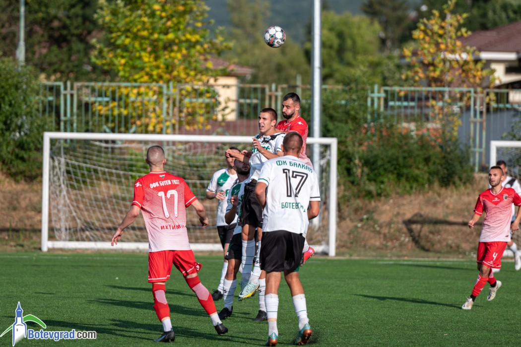 За кеф на 400-те зрители, изпълнили почти до краен предел стадион “Герена”, Балкан Ботевград победи Ботев Ихтиман с 4:3 в турнира за Купата на България. Срещата започна с натиск и фрапантен пропуск на Йордан Дамянов в 3-ата минута. Въпреки, че бяха по активни на терена, футболистите на Иван Редовски се пропукаха на два пъти по идентичен начин и гостите поведоха с 0:2. Отборът на Балкан не се предаде и капитанът Емил Колев поведе към обрата в мача след гол в 44-ата минута. През второто полувреме домакините доминираха и логично юношата на Балкан Николай Миков вкара красив гол за 2:2. При една от редките си атаки след колективна грешка в отбраната, влезлият като резерва лидер на тима, Борислав Балджийски отново даде аванс на гостите. Въпреки тежкия удар отборът на Балкан намери морално волеви сили и налижи мощен натиск, който в 88-ата минута материализира отново капитана Колев с гол от дузпа. В този момент наставникът Иван Редовски погледна към дузпите като замени вратаря си, но не така мислеха неговите футболисти. В 94- ата минута след страхотна контраатака Александър Иванов намери опитния Димитър Руйчев, който хвърли в екстаз съотборниците си и публиката. Така Балкан продължава напред в турнира и се реваншира за нелепата загуба в Ихтиман преди две седмици.