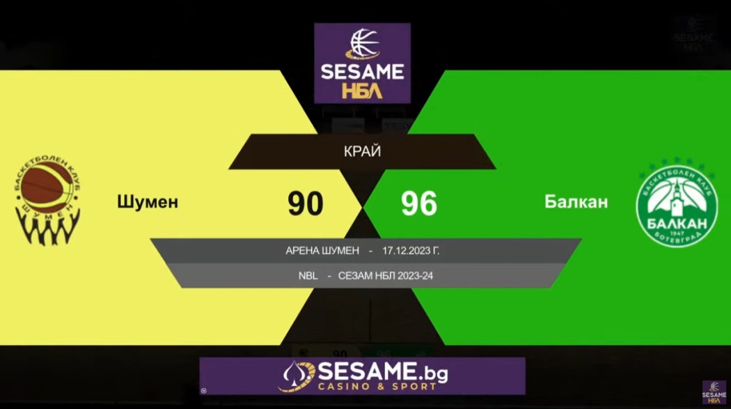 Баскетболистите на Балкан започнаха с победа второто завъртане от редовния сезон на НБЛ. Тази вече при гостуването на Шумен те спечелиха след петминутно продължение с 96-90 (17-22, 28-23, 23-24, 18-17, 10-4).