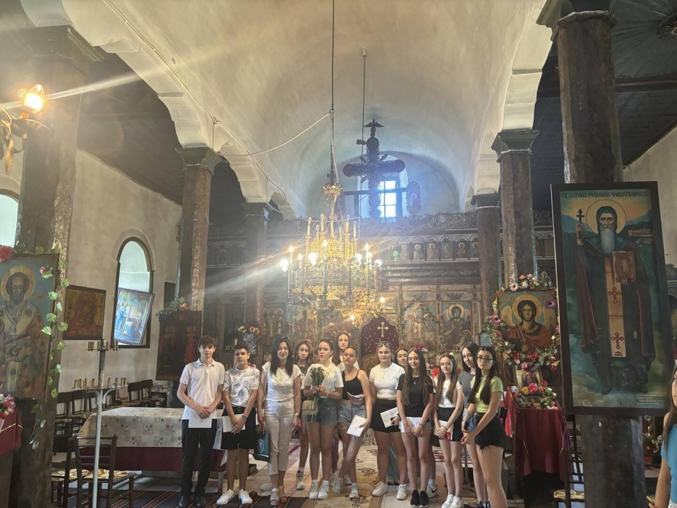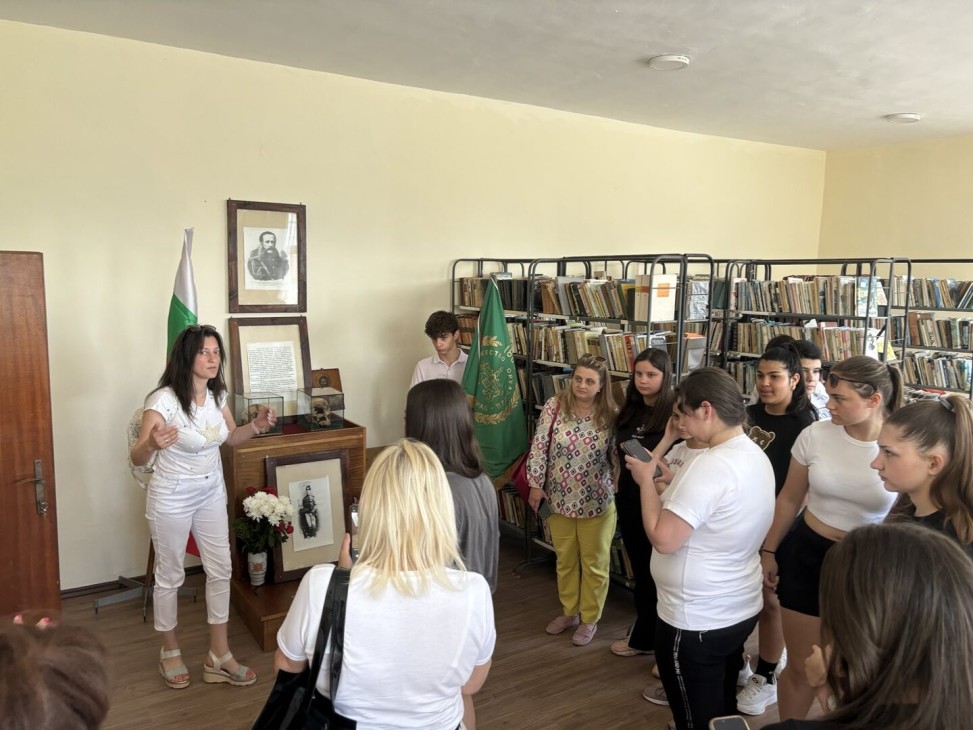 Първата спирка от предварително определения маршрут беше Скравена, където групата посети Паметник-костница на Ботевите четници и поднесе цветя в знак на признателност към подвига на героите. Последва беседа, изнесена от библиотекар Цанка Йорданова.