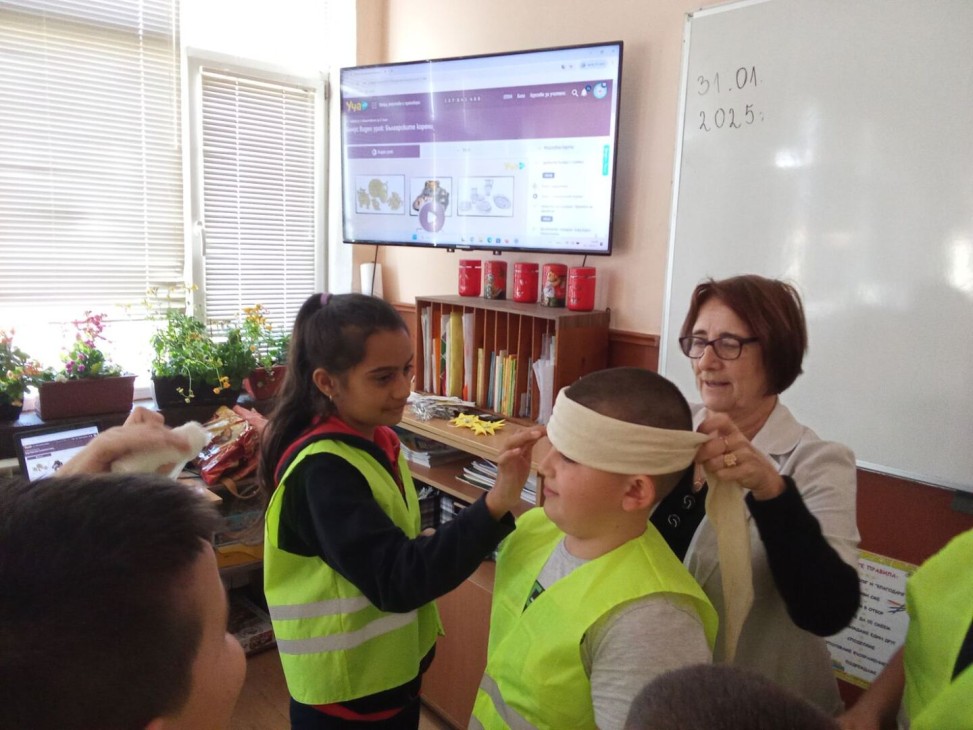 Учениците от 3-ти „Г“ клас на СУ „Хр. Ясенов” участваха в поредното си занимание по превантивната програма на МВР „Детско полицейско управление”. Темата на беседата бе от раздел „Долекарска помощ“, като целта на заниманието бе децата да се подготвят как да реагират при инцидент, свързан с кръвотечение.