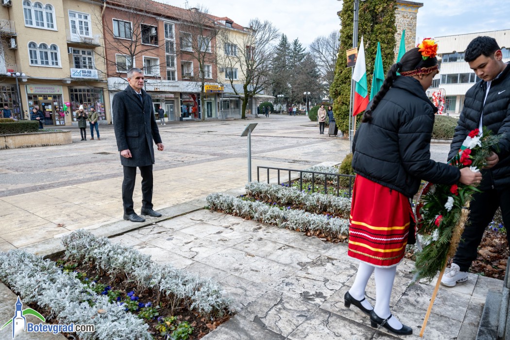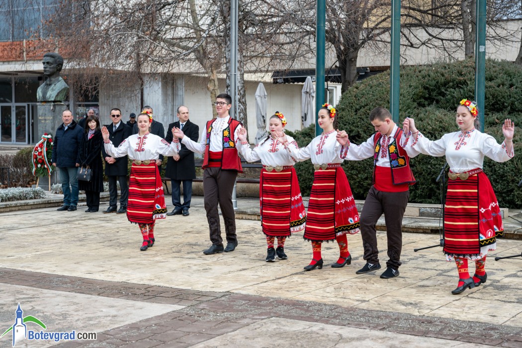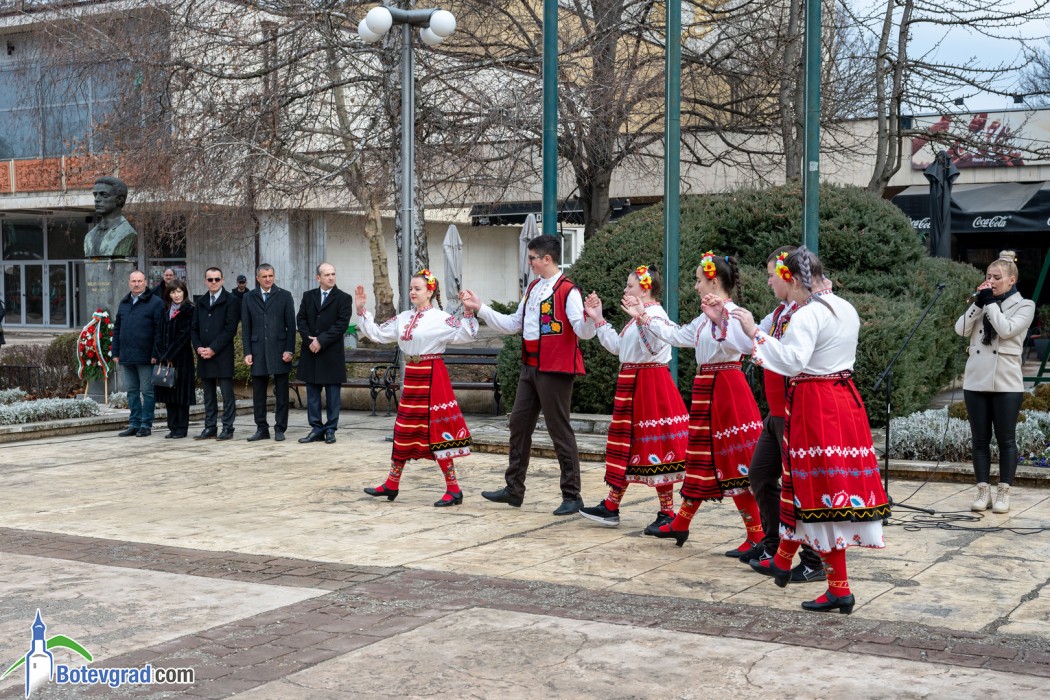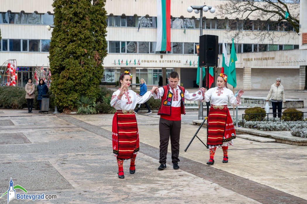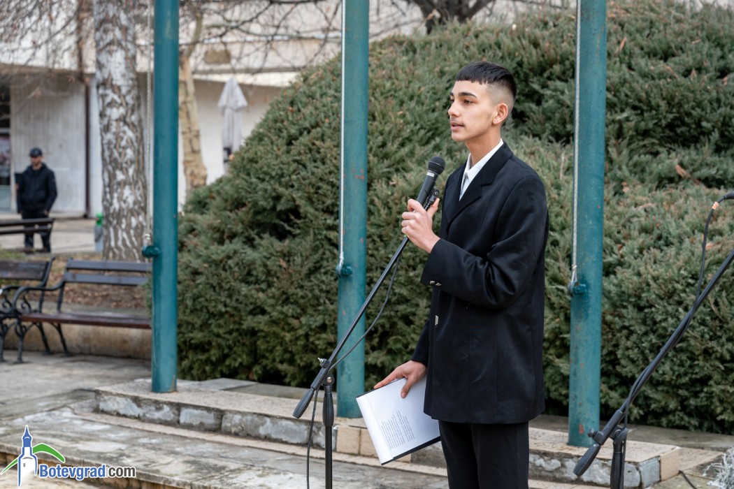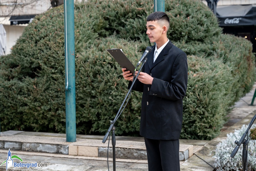 На площад “Освобождение“ прозвуча Вазовото стихотворение “Опълченците на Шипка“, изпълнено от Константин Коцев – ученик от ТПГ “Стамен Панчев“. В програмата взеха участие Кристина Матеева, която изпълни песента “Йовано, Йованке“, и клуб “Хороводец“ при ПГТМ “Христо Ботев“, с ръководител Нина Петкова.