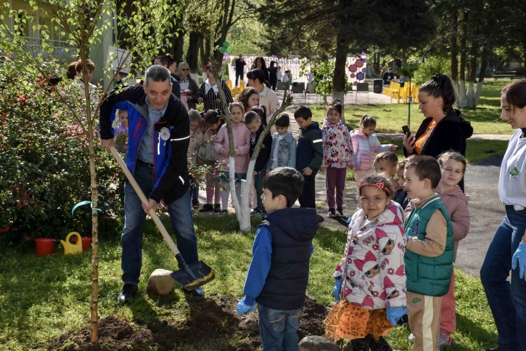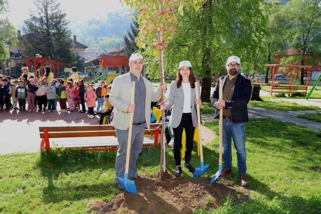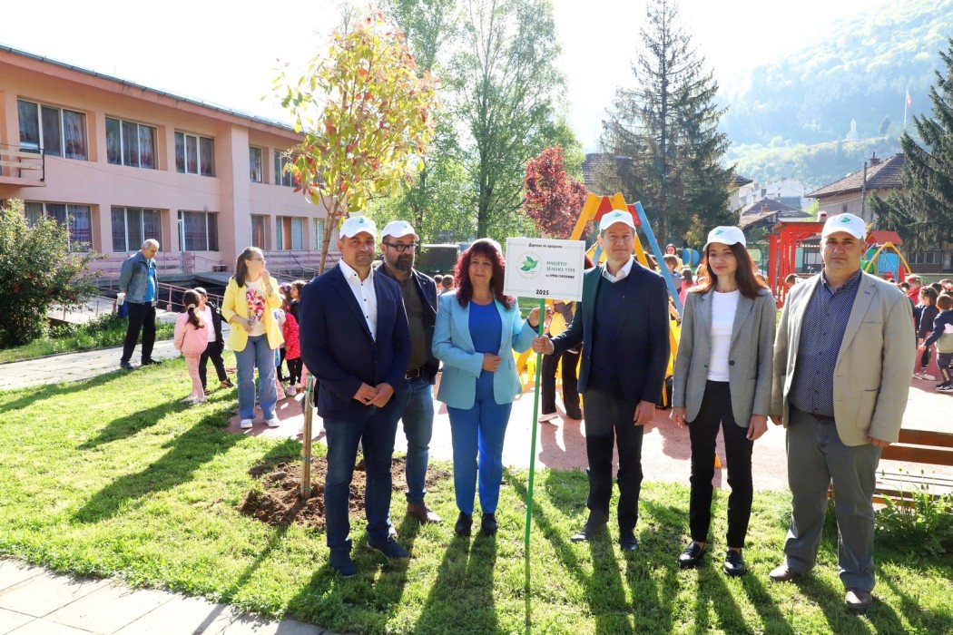 „В рамките на две години по програма „Нашето зелено утре“ на територията на община Етрополе са засадени около 460 дървета и храсти, които са разположени в детските градини, парковете и населените места в общината. Благодаря за цялостната кампания, която проявява една социална ангажираност и отговорност към Етрополе. През настоящата година по Благотворителната програма „Българските добродетели“ на Група ГЕОТЕХМИН по предложение на г-жа Маринова предстои да бъдат ремонтирани няколко помещения в детската градина. Пожелавам на всички деца и на екипа на ДГ „Звънче“ да сте все така лъчезарни, позитивни и усмихнати и да помагате и съдействате на Община Етрополе, защото ние сме едно голямо семейство“, заяви кметът инж. Владимир Александров.