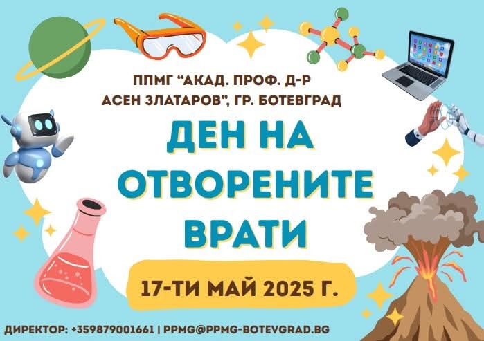 Ден на отворените врати в ППМГ “Акад. проф. д-р Асен Златаров“ ще се проведе на 17 май (събота) от 10:30 часа, съобщиха от ръководството на училището.