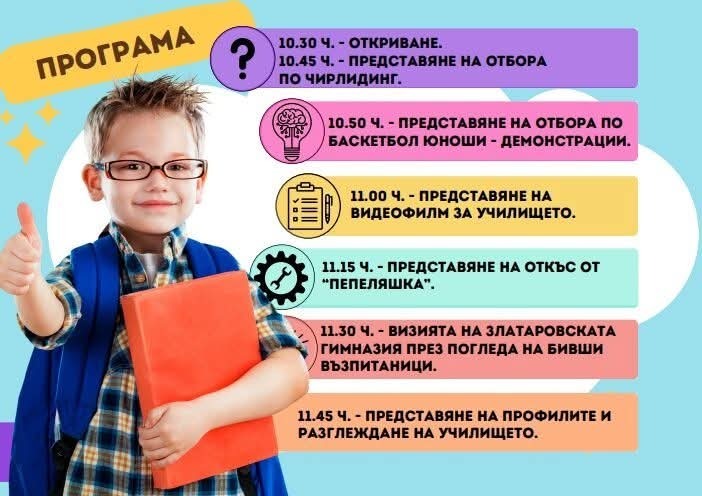 Представяне на филм за училището; Визията на Златаровската гимназия през погледа на бивши нейни възпитаници; Представяне на профилите и разглеждане на училището - това е само част от програмата в рамките на инициативата.