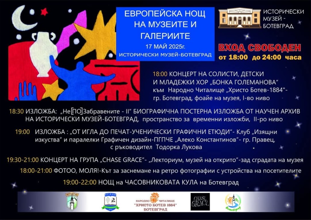 На 17 май 2025г. Исторически музей - Ботевград за пореден път се включва в културния форум „Европейска нощ на музеите и галериите 2025“.