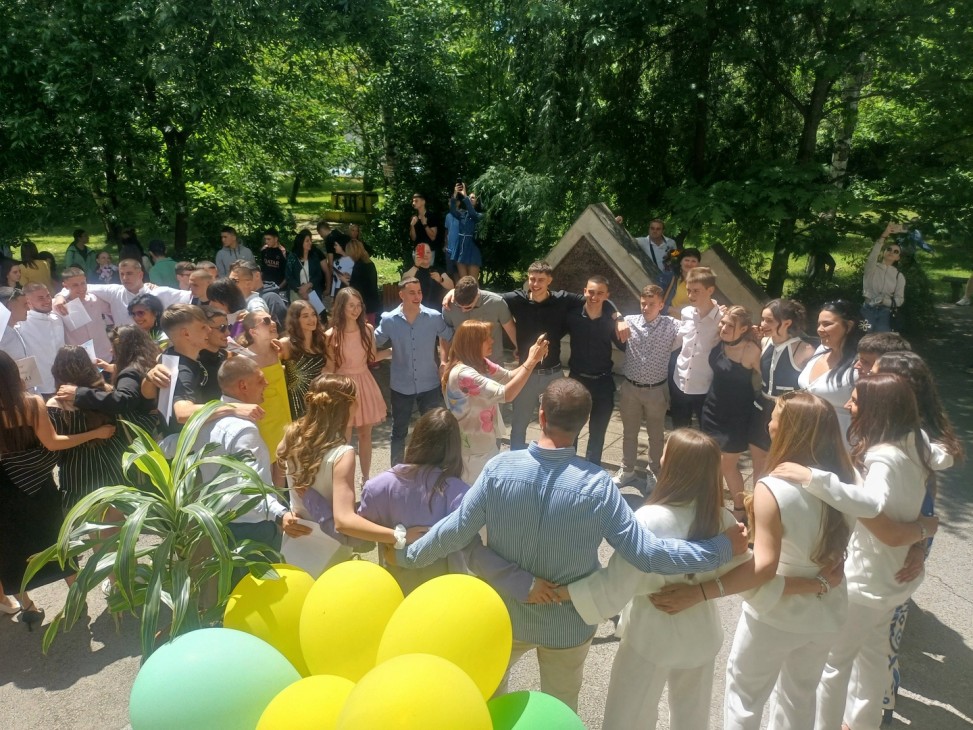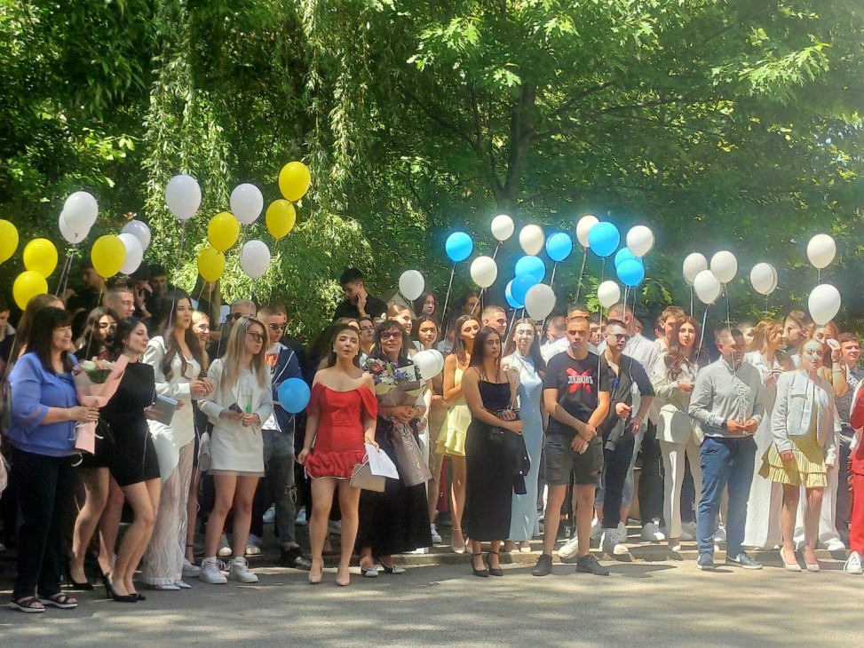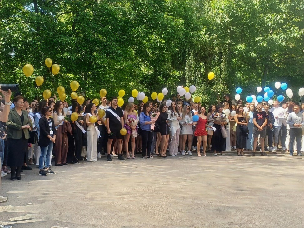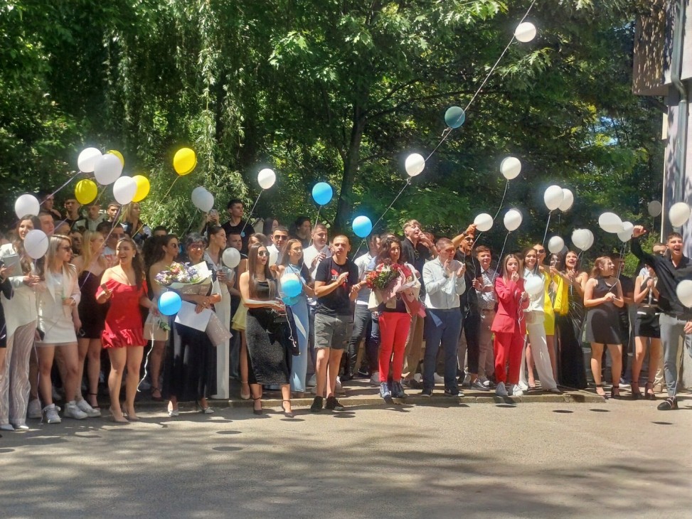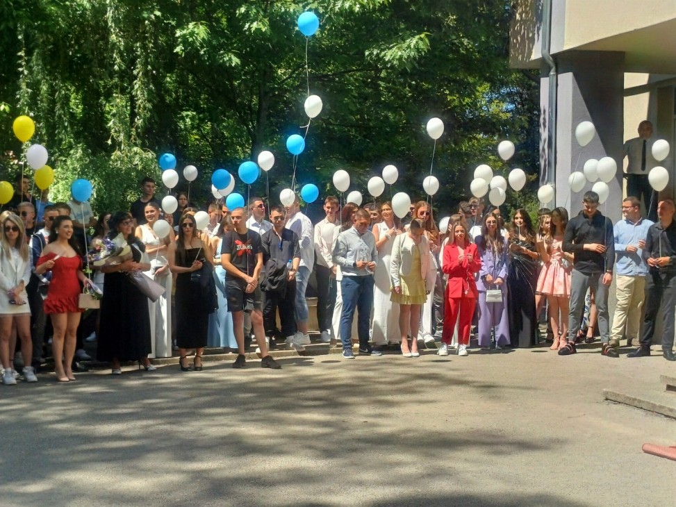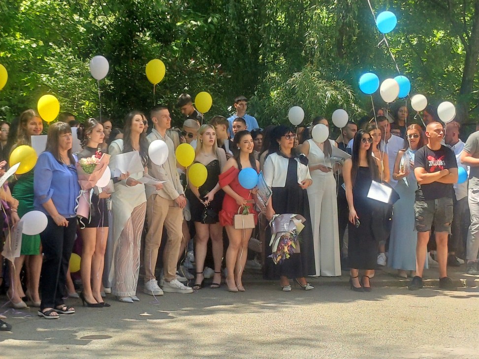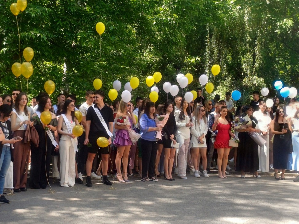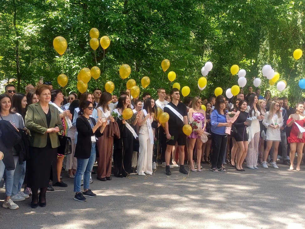 В небето бяха пуснати два бели гълъба, символизиращи новото начало, щастието, любовта и мира. След тях полетяха и балоните на абитуриентите.