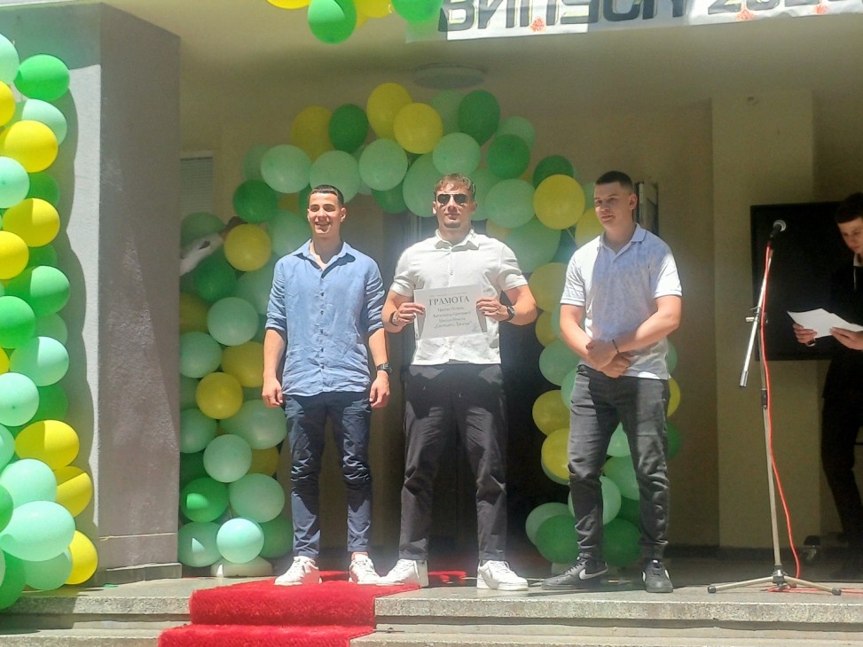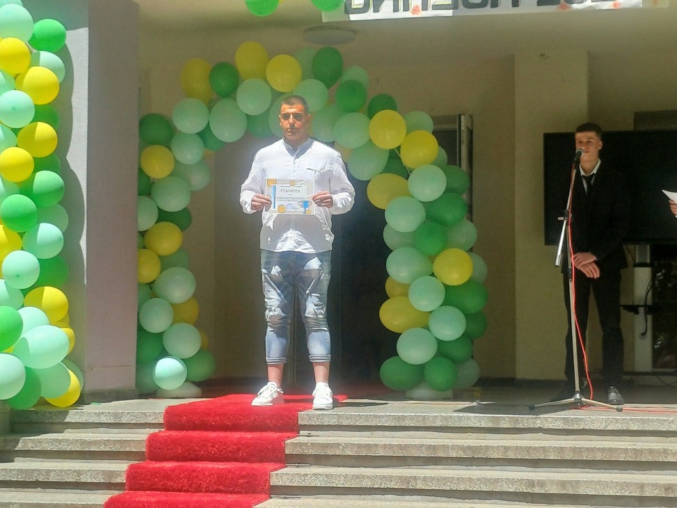 Даниела Колева съобщи, че по решение на педагогическия съвет тази година с награда “Учител на годината“ се удостояват учителите Николета Иванова, Десислава Ангелова и Симона Василева. Тя връчи и два специални приза за високо спортно майсторство – на учителите Биляна Лалинска и Яна Пешева.