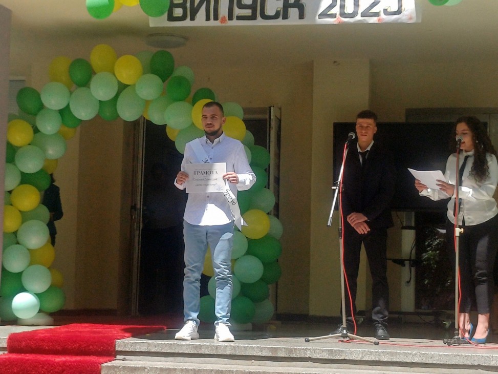 На финала на тържествената програма бяха раздадени наградите във вътрешноучилищния конкурс “Последен час“, който се провежда всяка година през месец май и цели да отличи индивидуалните качества и таланти на зрелостниците.