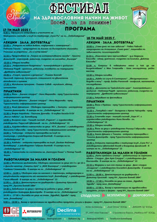 Фестивалът „Здравей, здраве“ се утвърждава като платформа за споделяне на знания, опит и вдъхновение в посока по-здравословен и осъзнат начин на живот. С пълната програма може да се запознаете тук: