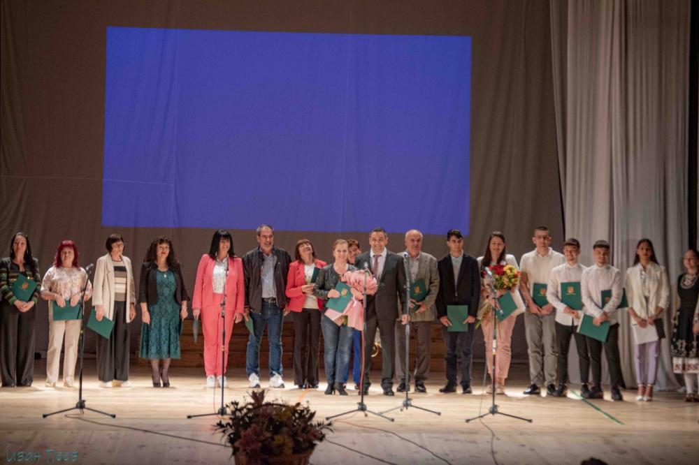 С грамоти за активно участие в образователния процес бяха удостоени учениците Калина Маринова, Тихомира Михайлова, Йоан-Марин Пенков, Николай Николов, Николай Пешев, Тонислав Пешев. Наградите бяха връчени лично от инж. Владимир Александров. Поздравителен адрес и красив букет получи Калинка Пушкарова по случай рождения си ден. Кметът на общината и ппжела да продължава да бъде все така лъчезарна, усмихната и зареждаща.