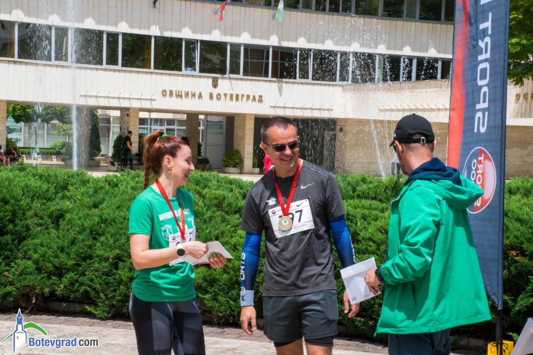 Призьорите на 8 км бяха наградени от кмета на община Ботевград Иван Гавалюгов. А тези на 21 км - от заместник-кмета Борис Борисов. Заелите местата от първо до шесто при мъжете и жените в дългите дистанции получиха парични награди.