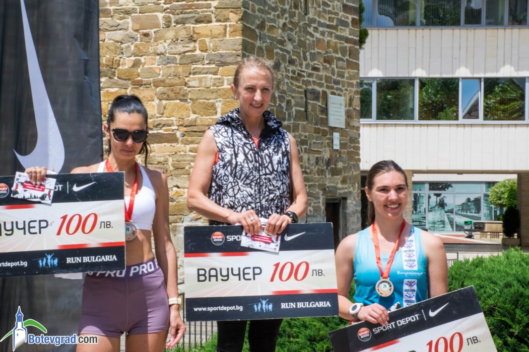 На 21 километра при жените най-добра от седемте участнички бе Снежина Стефанова. Съпругата на изтъкнатия лекоатлет от Ботевград Петко Стефанов - участник в две олимпийски игри и многократен шампион на България, бе най-бърза с време 1:58.04 ч. Друга ботевградчанка - Маргарита Дренова, финишира втора след победителката.