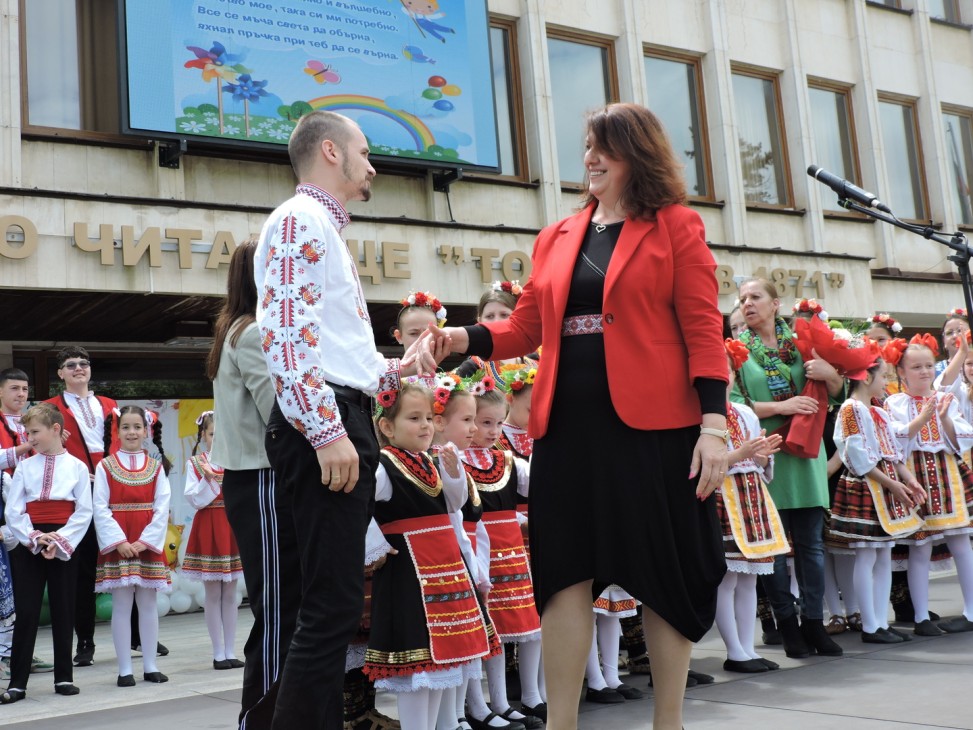 „Бъдете посланици на нашето народно творчество, защото в него се крие мъдростта и нашата идентичност като българи. Вие правите всяка сцена в магия, всяка песен в емоция, всеки жест в послание,“ с тези думи благодари заместник-кметът Катя Симеонова и от името на кмета инж. Александров тя поднесе красиви букети на ръководителите на даровитите възпитаници - Калинка Пушкарова, Николета Христова и Павлин Христов.