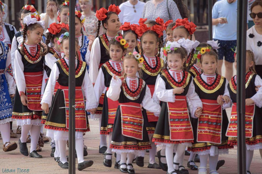Деца и младежи, облечени в народни носии и сценични костюми, направиха кратък дефилир на Централния площад в Eтрополе и го превърнаха в пъстър цветен килим.