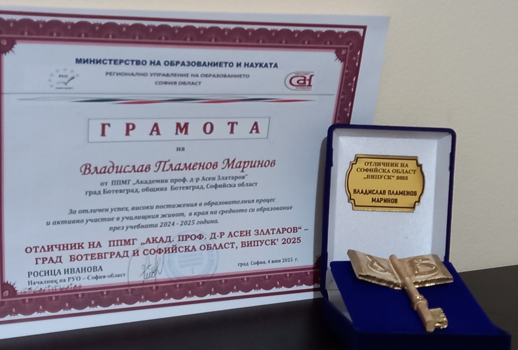 За отличник на Софийска област бе избран Владислав Маринов, който се класира сред първите десет на националната олимпиада по БЕЛ.